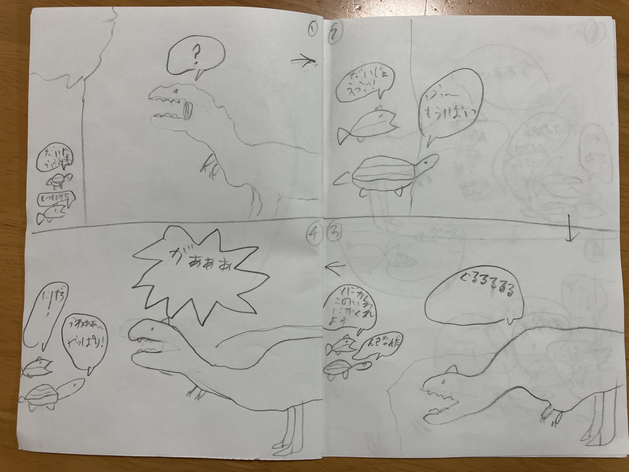 かめくんとマグロくんシリーズ①の続きです。きょうりゅうが出てきます。
