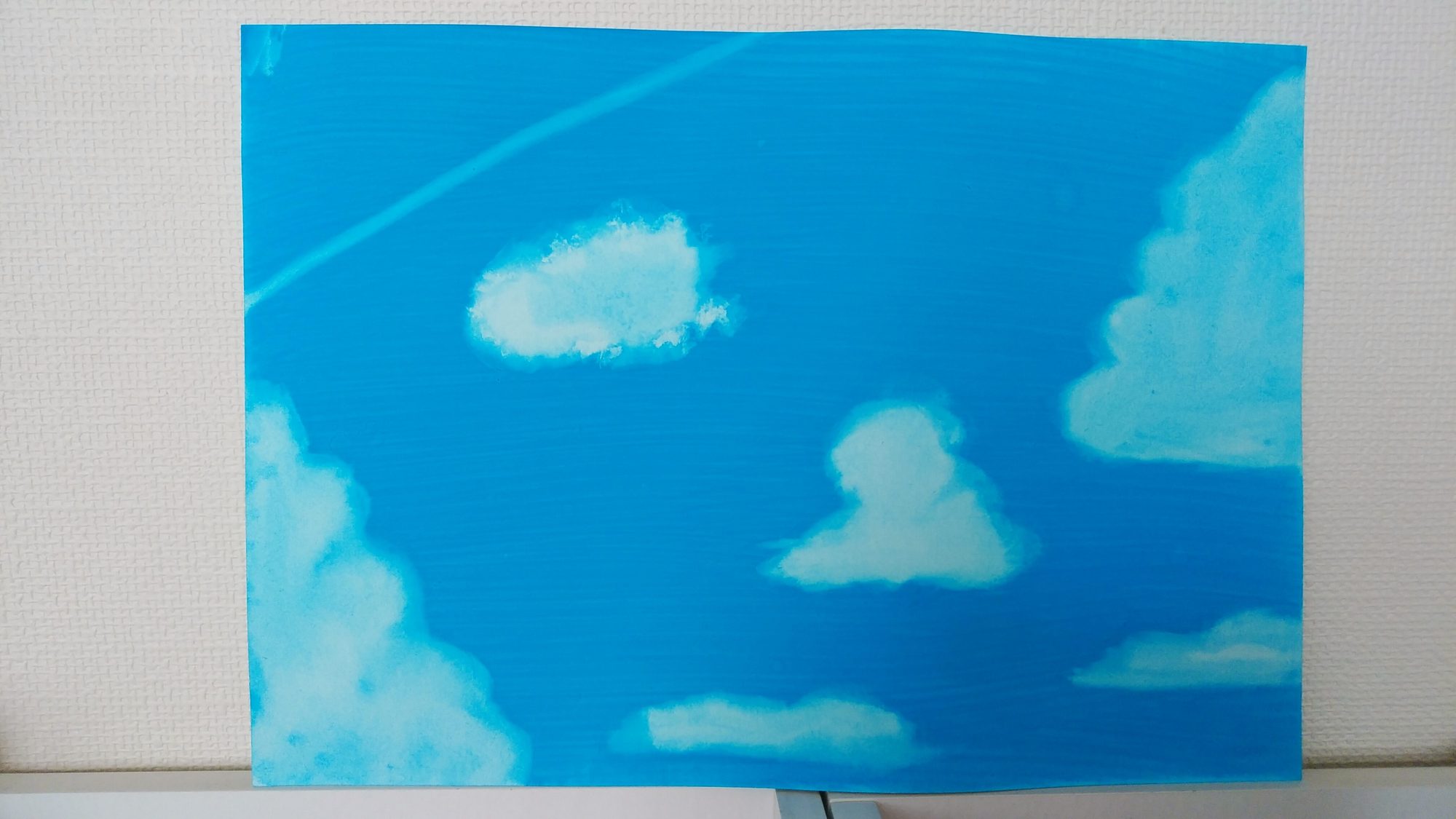 私も気にしていた空の所を描く時に、絵の具を少し多めにしてみたり…!