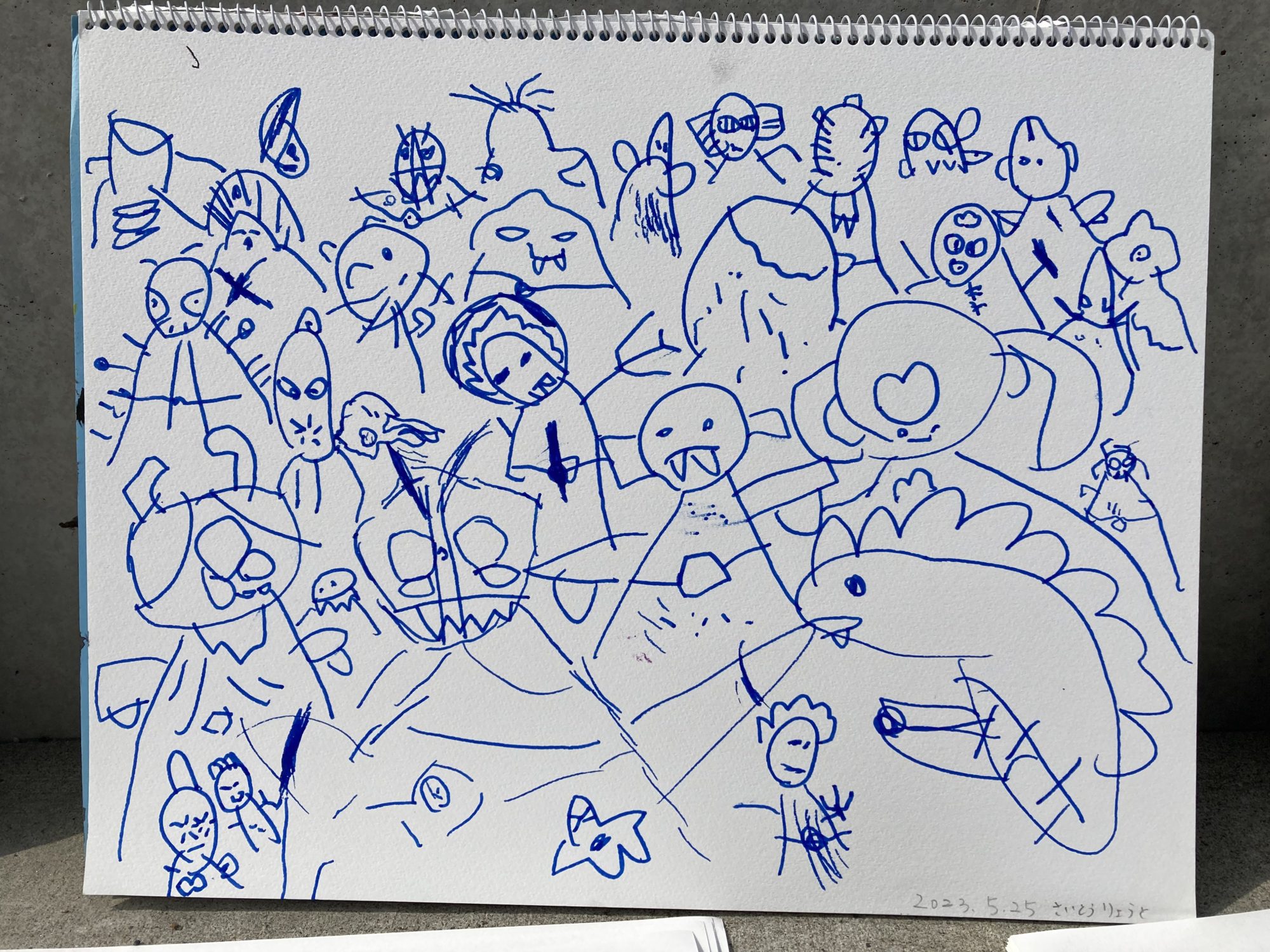 私は、りょうとくんの青色の風から、今の季節のさわやかな風を感じました。青い世界で、りょうとくんの大好きな仲間たちが、楽しそうにワイワイしてますね😆