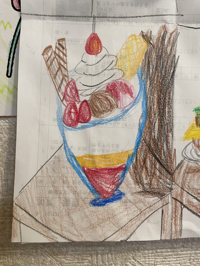 影は単純に黒で塗るのではなく、テーブルの色を意識して暗くして色を混ぜているところもグッド!