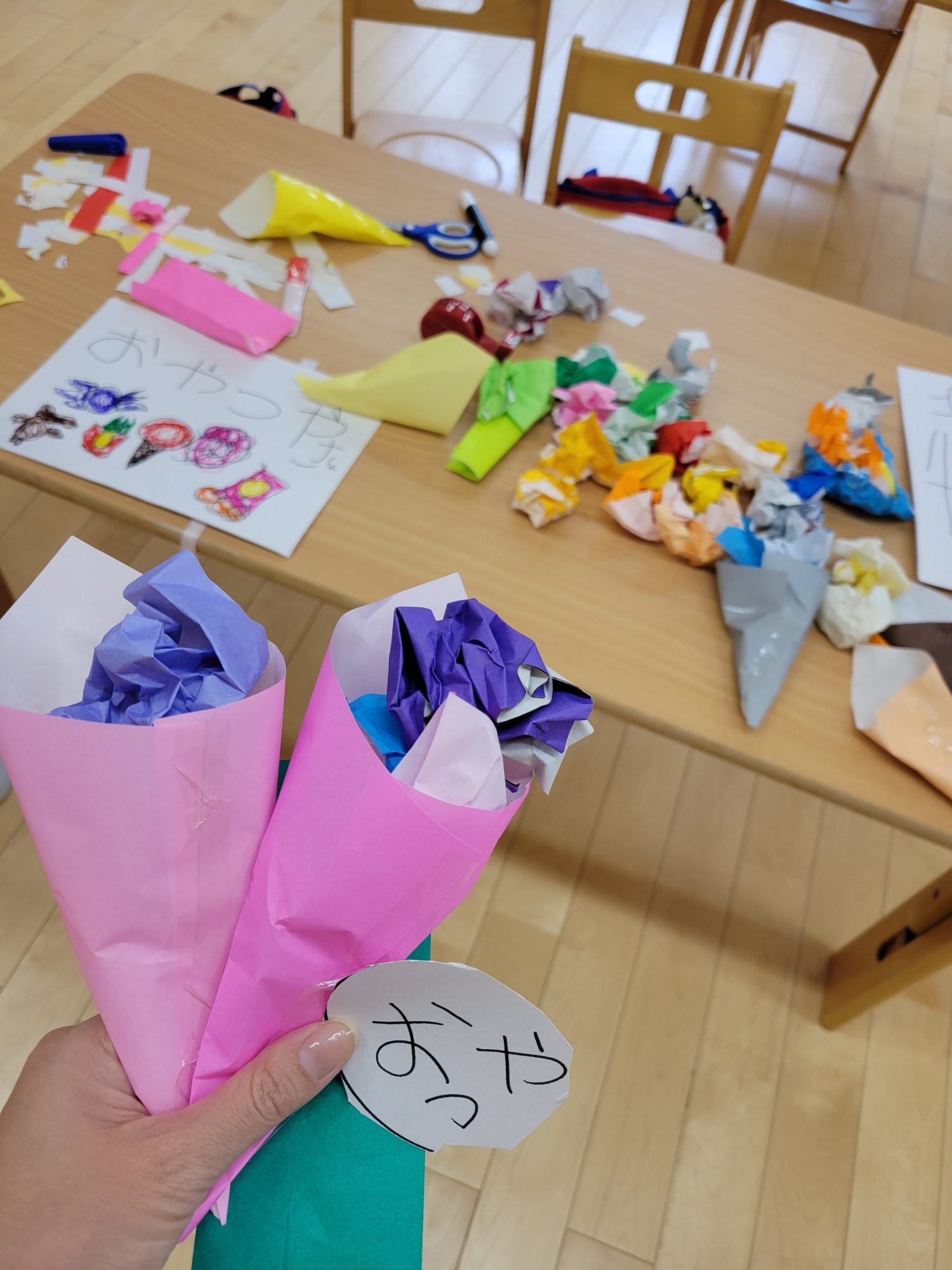 年中さんのお友達と一緒におやつ屋さんを作ったそうです。