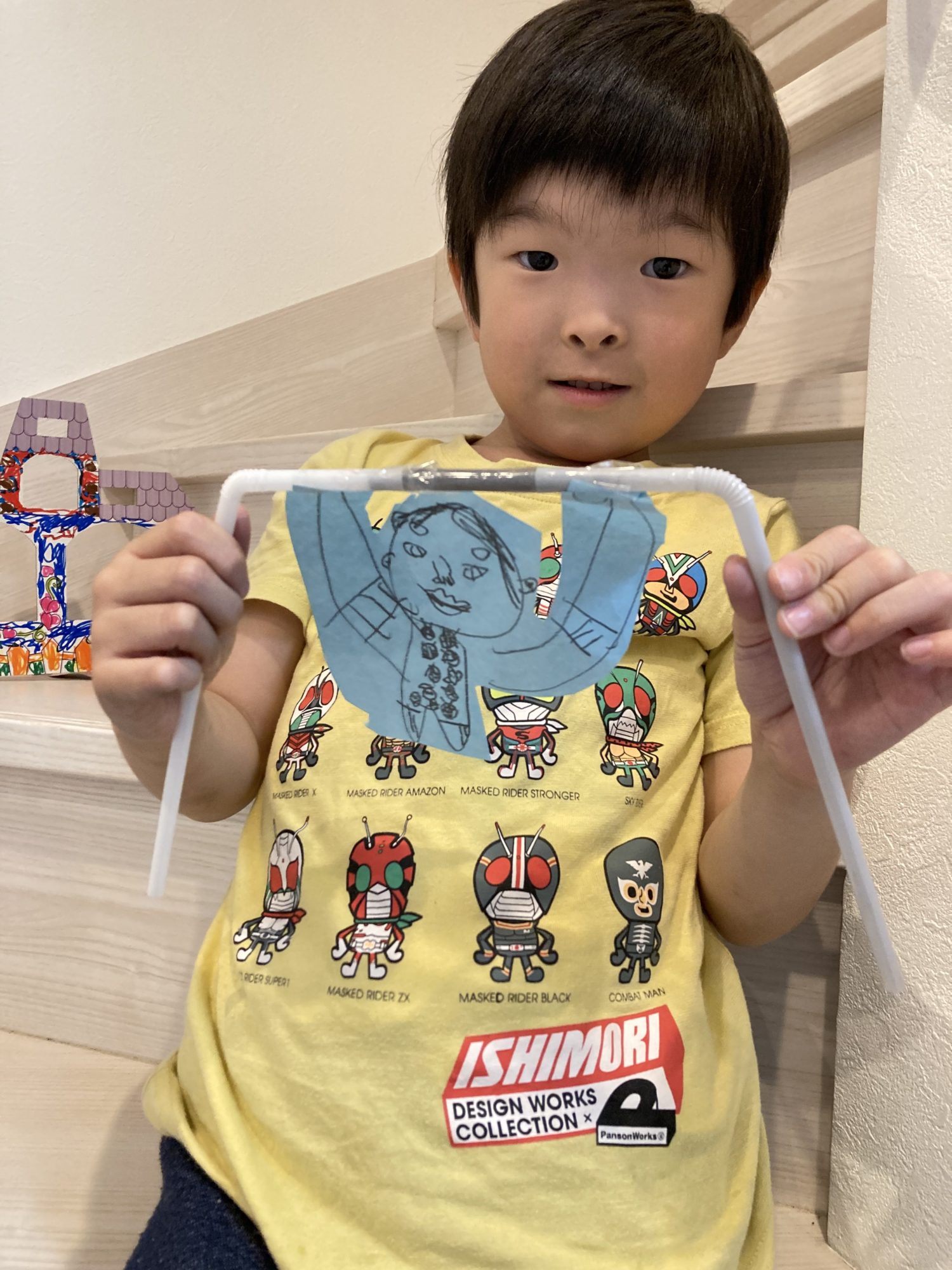 今日幼稚園で製作したストローを使って作った「オリンピック選手」をおうちに帰ってきてからもう一度作ってみました❗️
