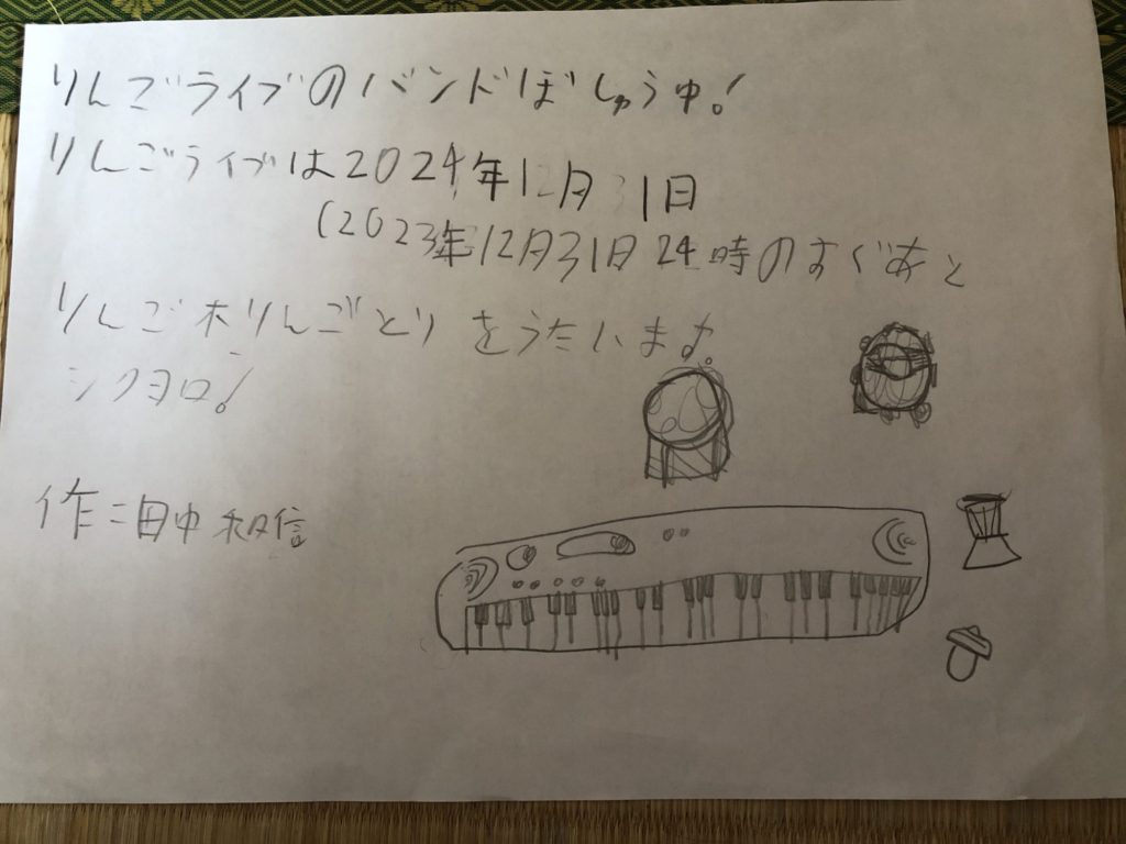 りんごの歌を作詞作曲して、年末にライブをやる予定です。