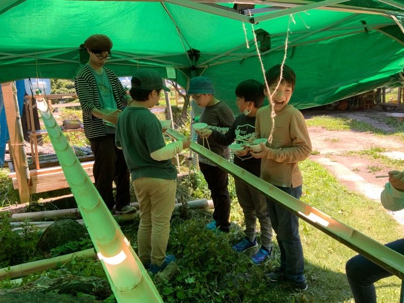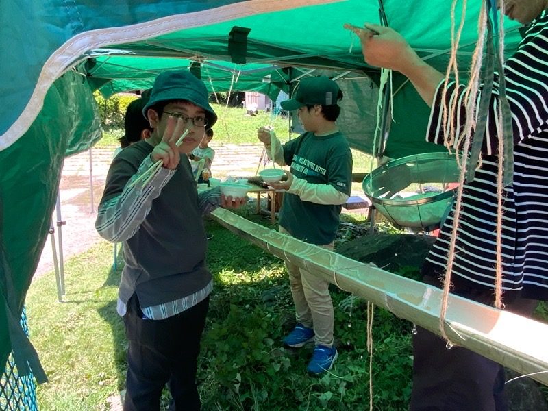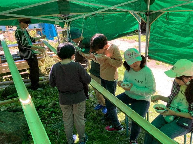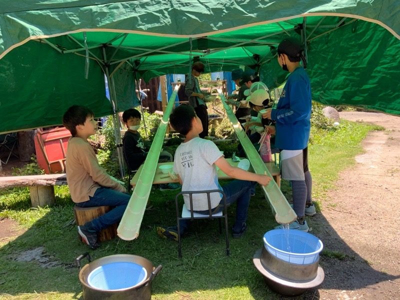 みんなでがんばった秘密基地で流しそうめん! もっとちょうだい!!!!