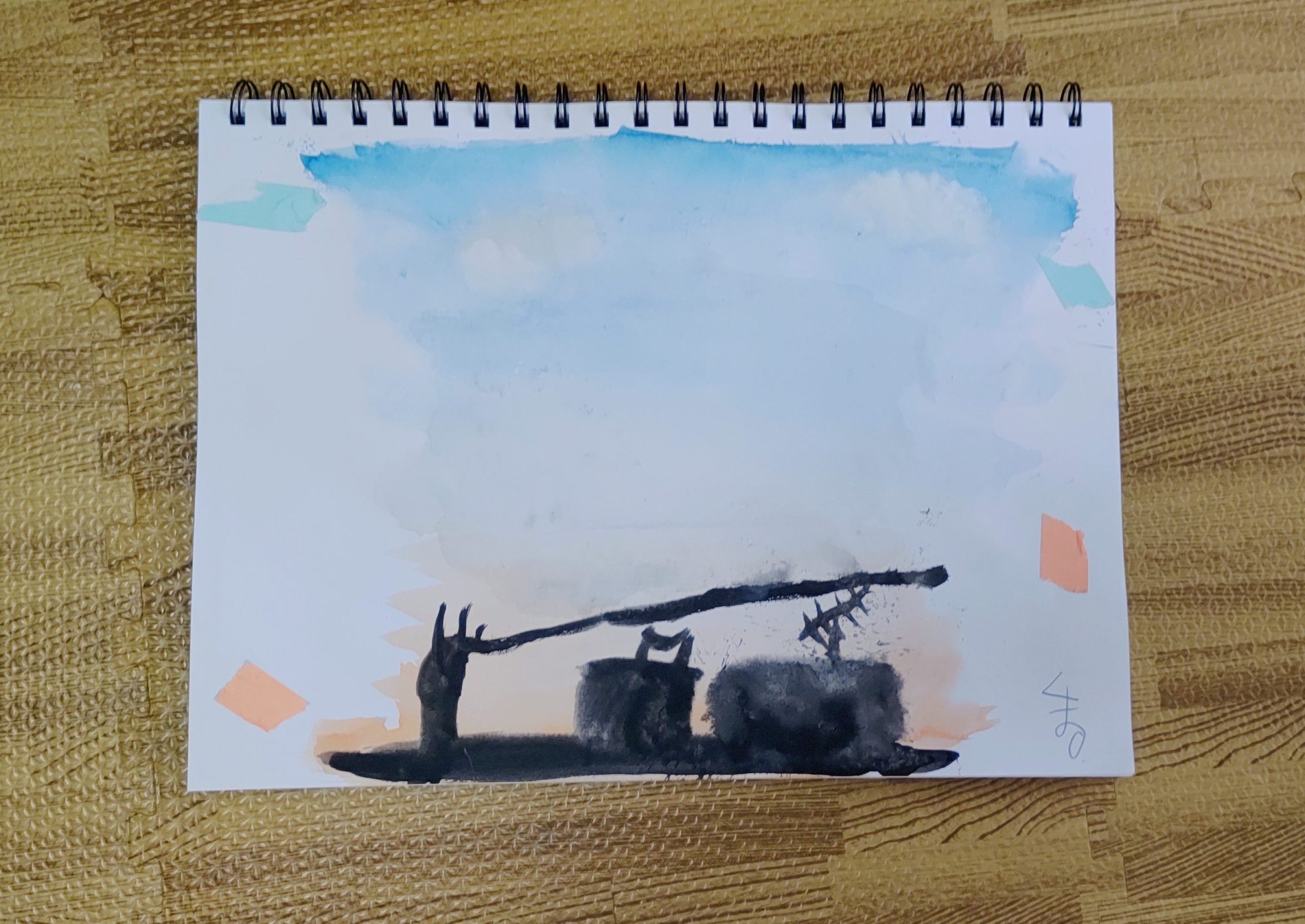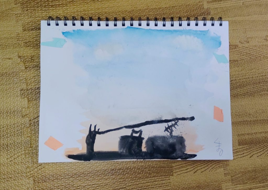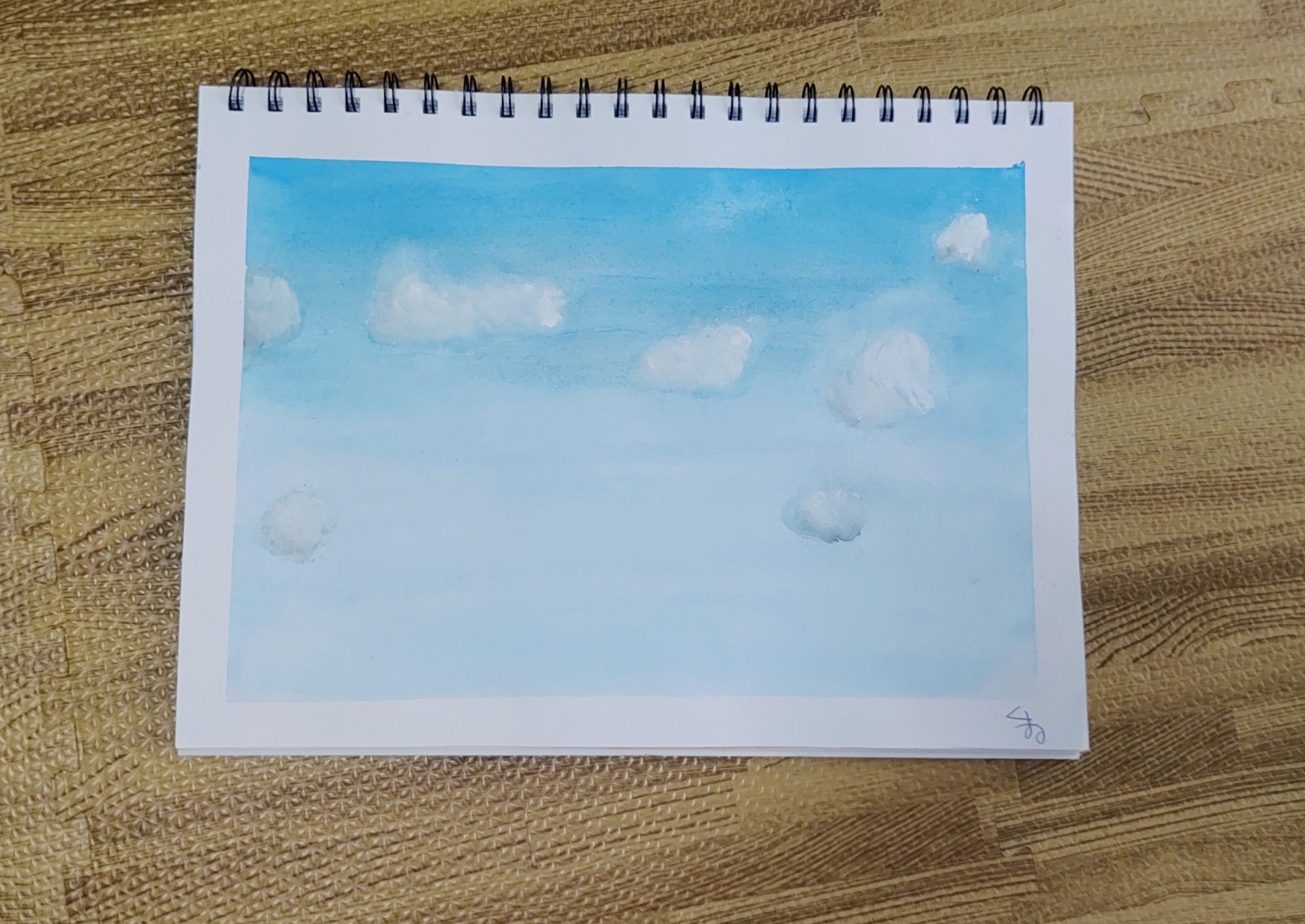 美しい空だと思いました。雲が点々とある感じが、本物の空の様で、日頃の観察が出ているなと思いました!