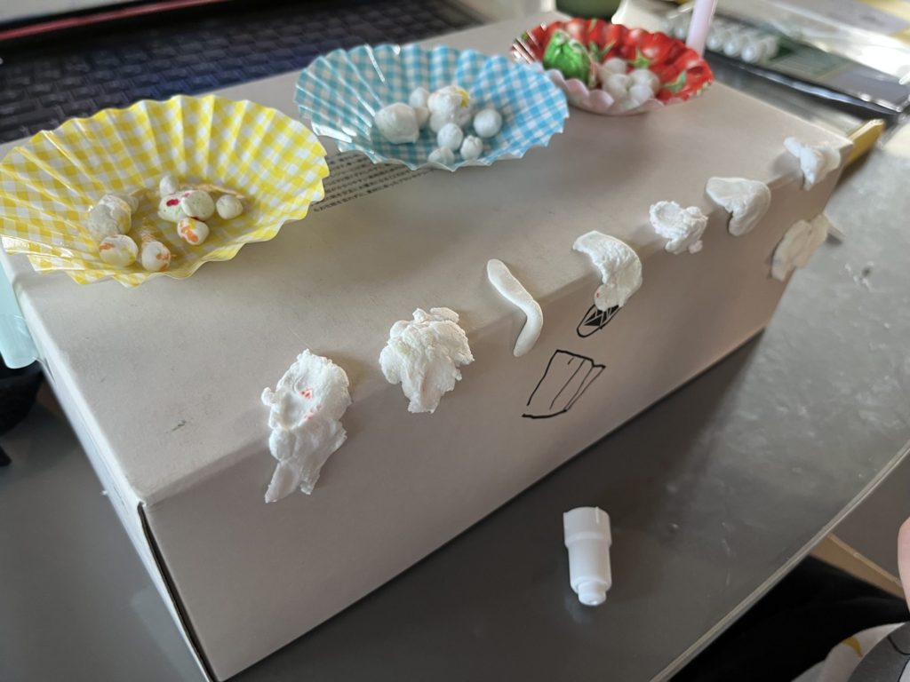 たくさんケーキとあめがあって、すごくたのしいねえ! どれをかおうかまよっちゃうなあ!