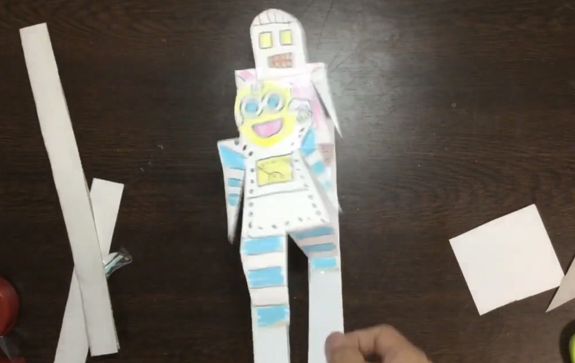 ロボットくんとおさんぽにいこう! あつがみ(ボール紙、工作用紙など)、はさみ、マーカーペン、セロハンテープ、おりがみを用意