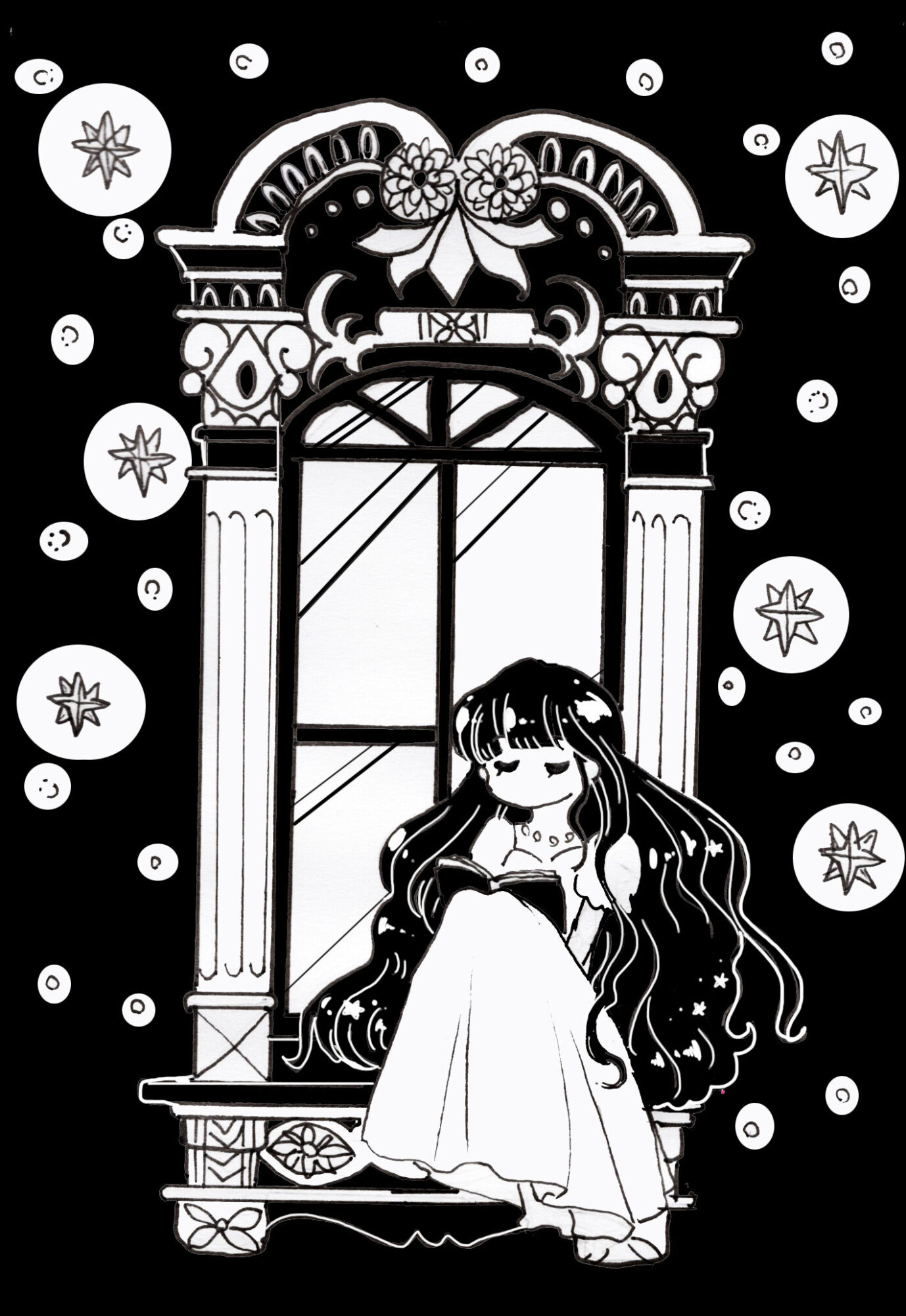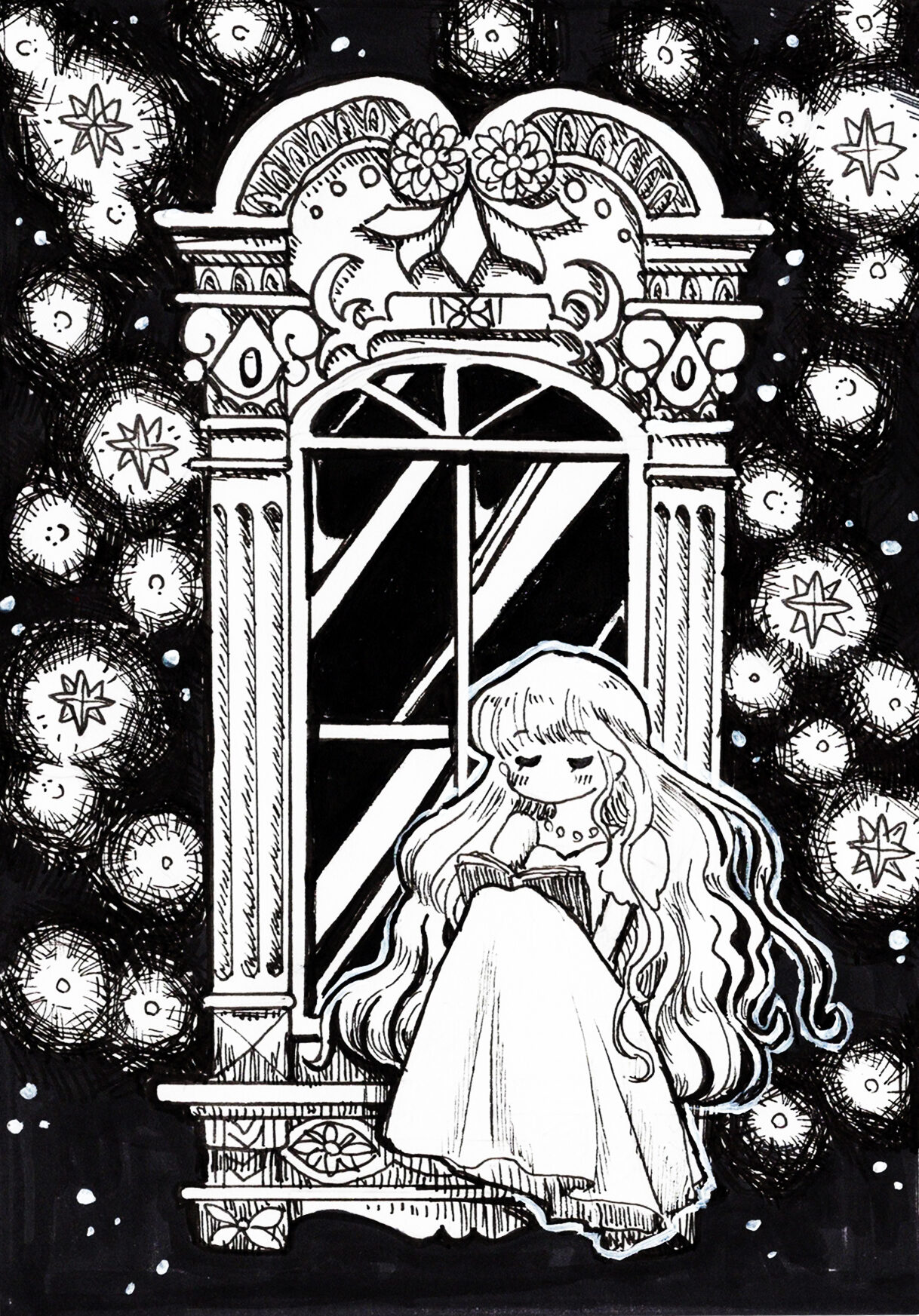 モノクロイラスト講座で描きました! 同じ白黒でも塗り方を変えるだけで印象が変わる。