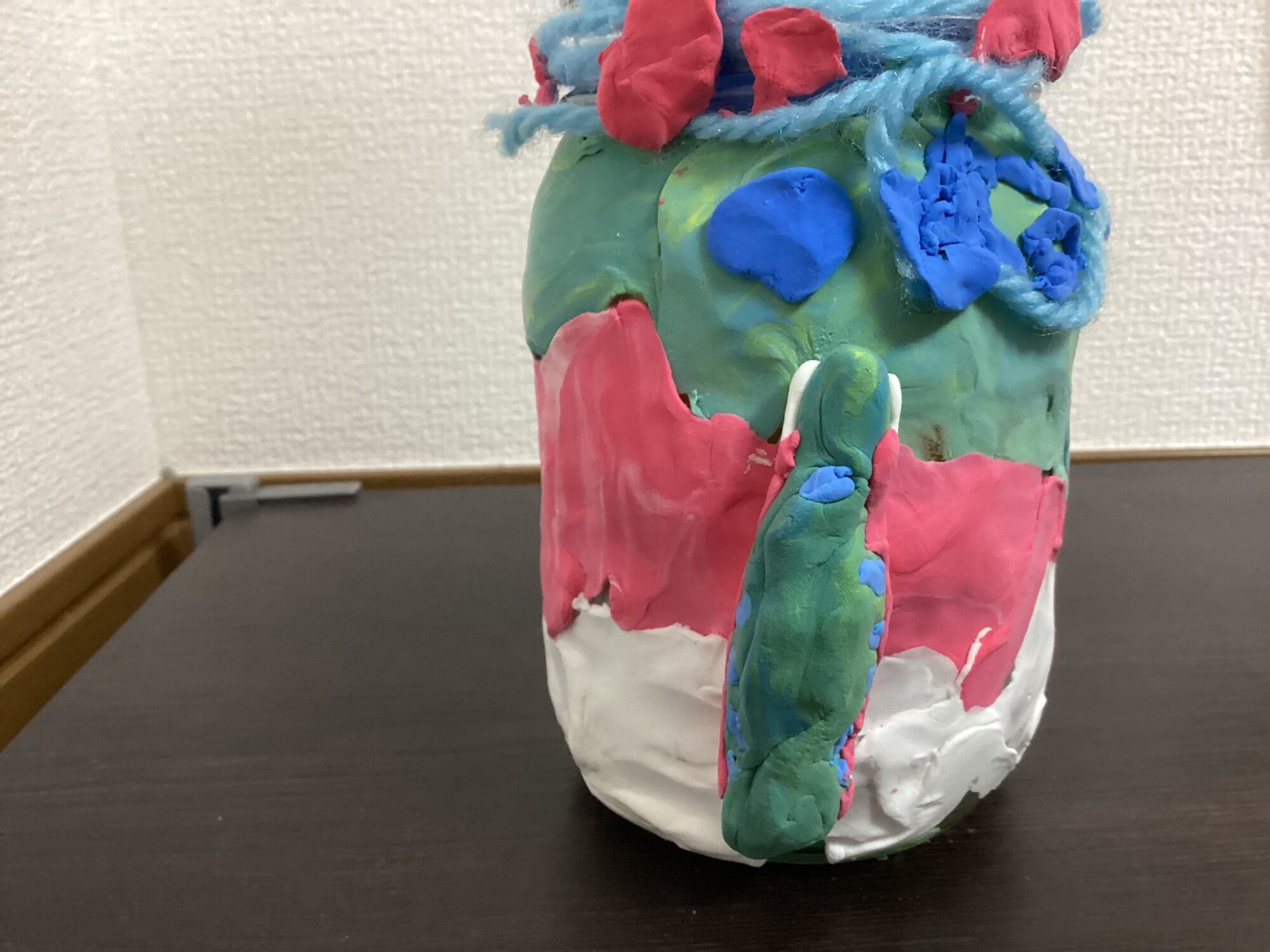 実は僕、鉄オタなんです。なのでこの鉛筆たてを学校の図工の時間で作りました。この鉛筆たてにある新幹線はE5系、E7系です。 この作品の特徴は、新幹線を立体で表現していることです。これによって新幹線がある