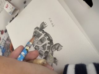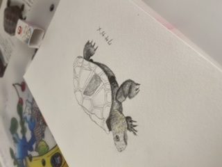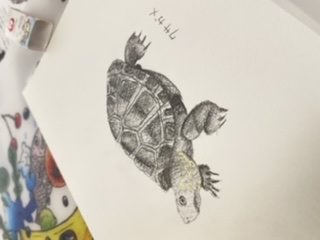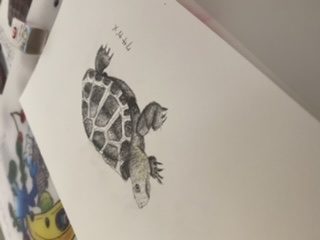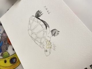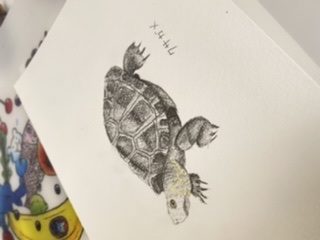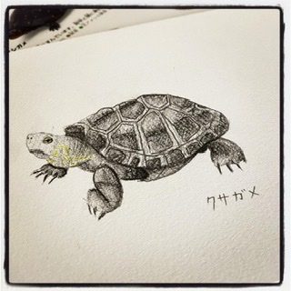 今家で飼っているカメはミドリガメ2匹ですが、今回は図鑑からクサガメを描いてみました!