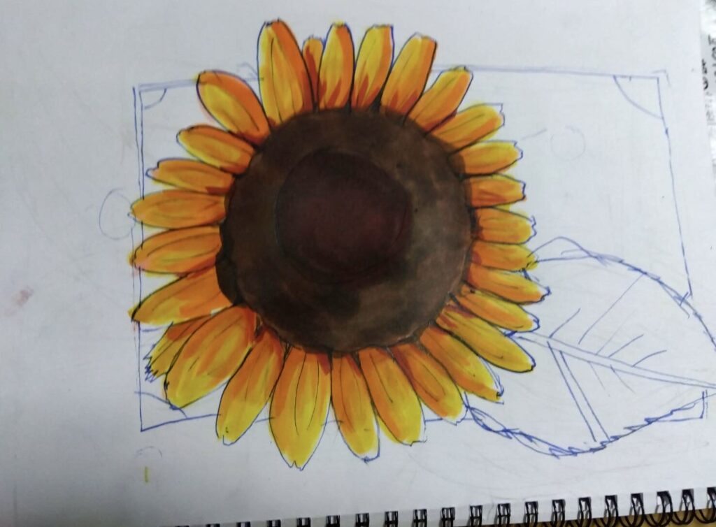 ガラスペンとイラストマーカーでひまわりを描いてみました。