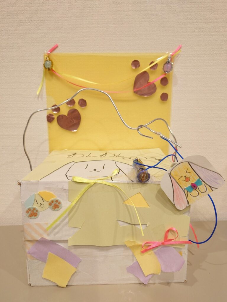 リボンや、画用紙を使っていたり、自分で家にあったものを使ってランタンのようなきらきらかわいい飾りもすてきだね〜!