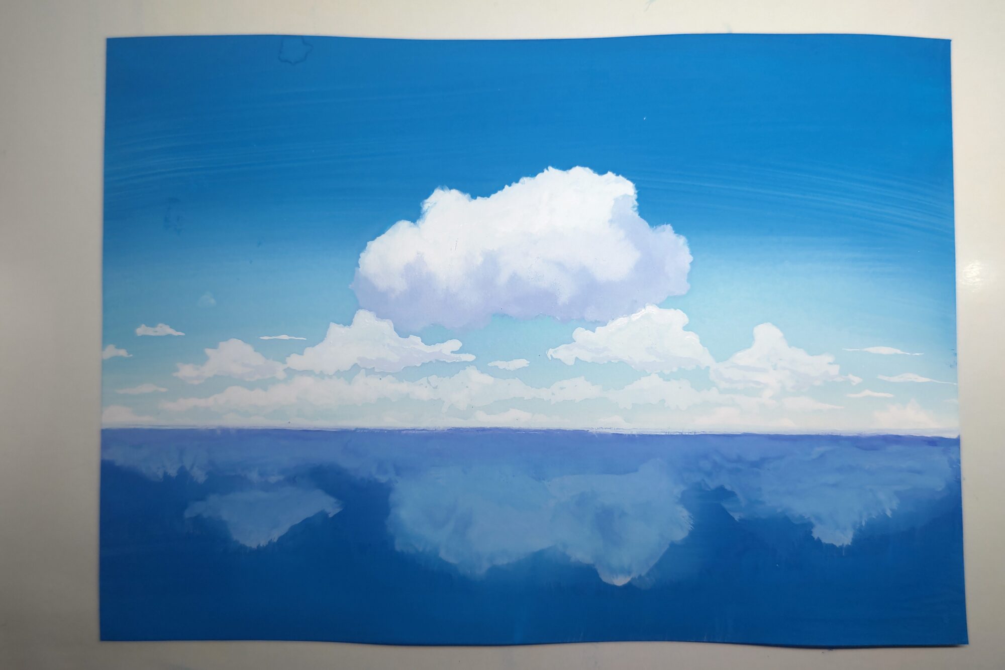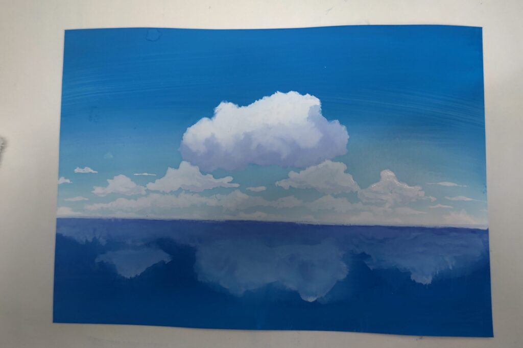 空と海に反射した雲です。反射した雲がなんか納得いかなかったので、次はもうちょい反射してない方の雲に寄せれたらいいなと思います。
