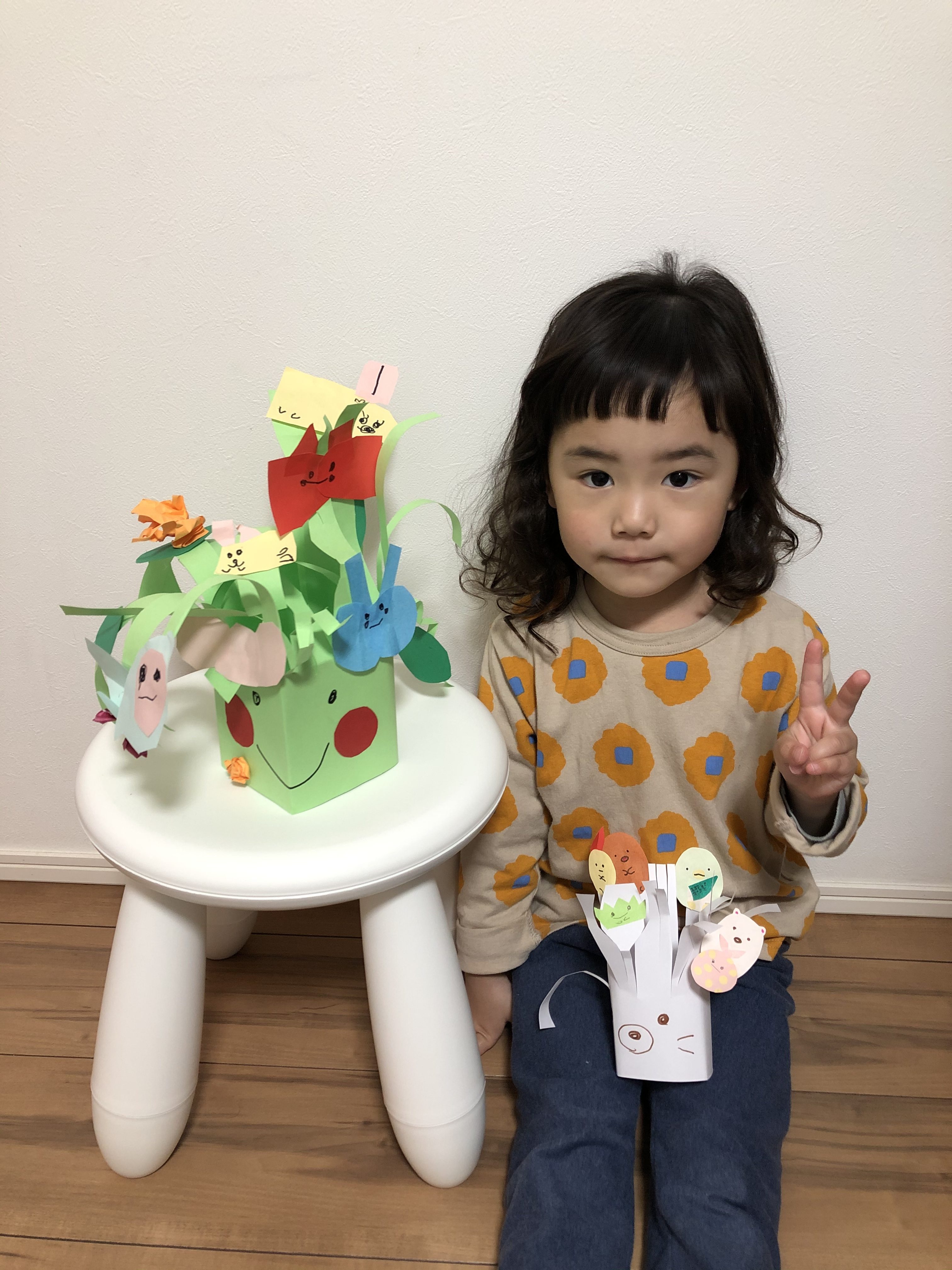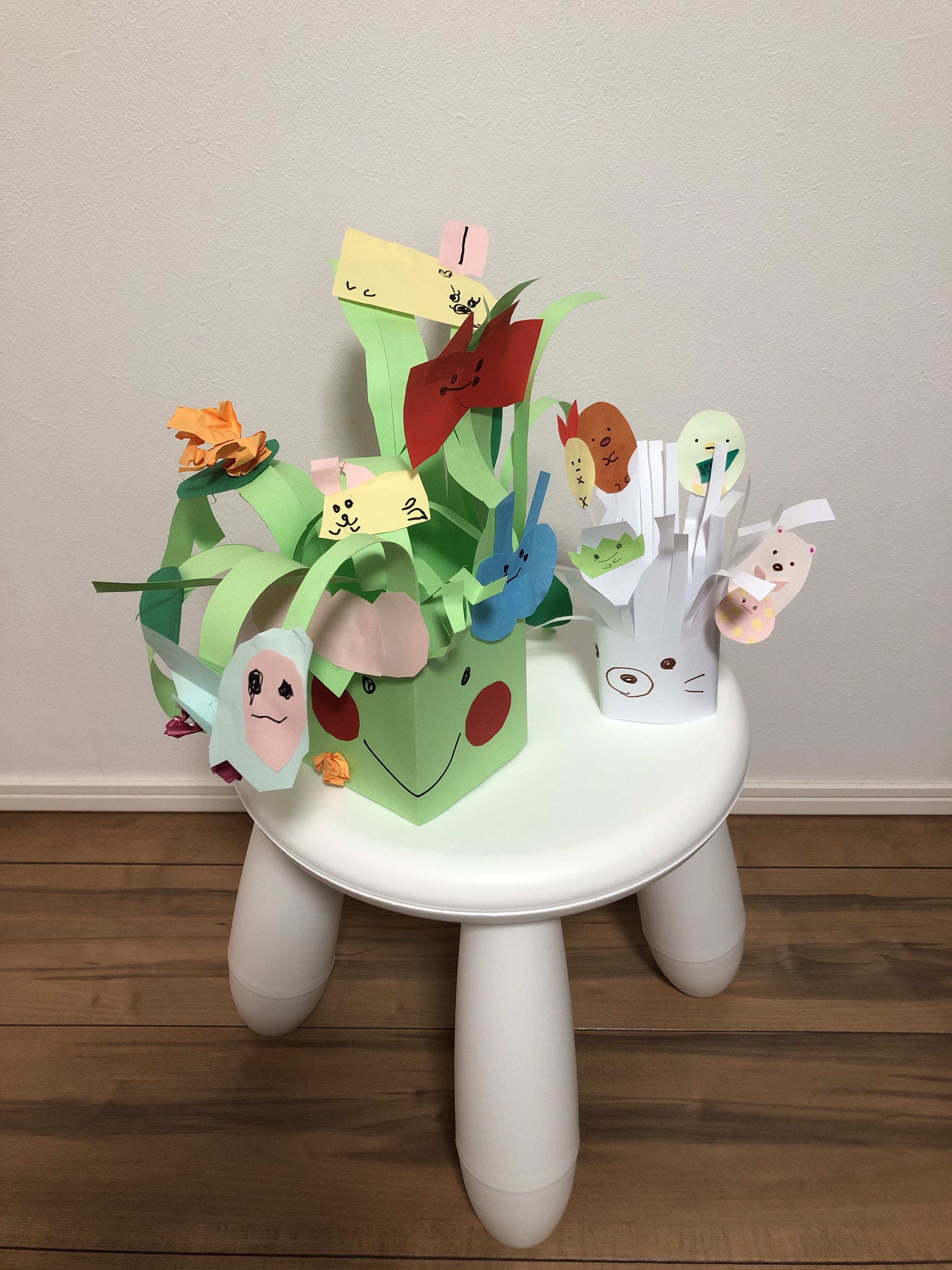 いっぱい枝があったり、小さな動物さんたちをつくってくれていて、さいかちゃんがはさみを楽しく使ってくれてるのが伝わります。