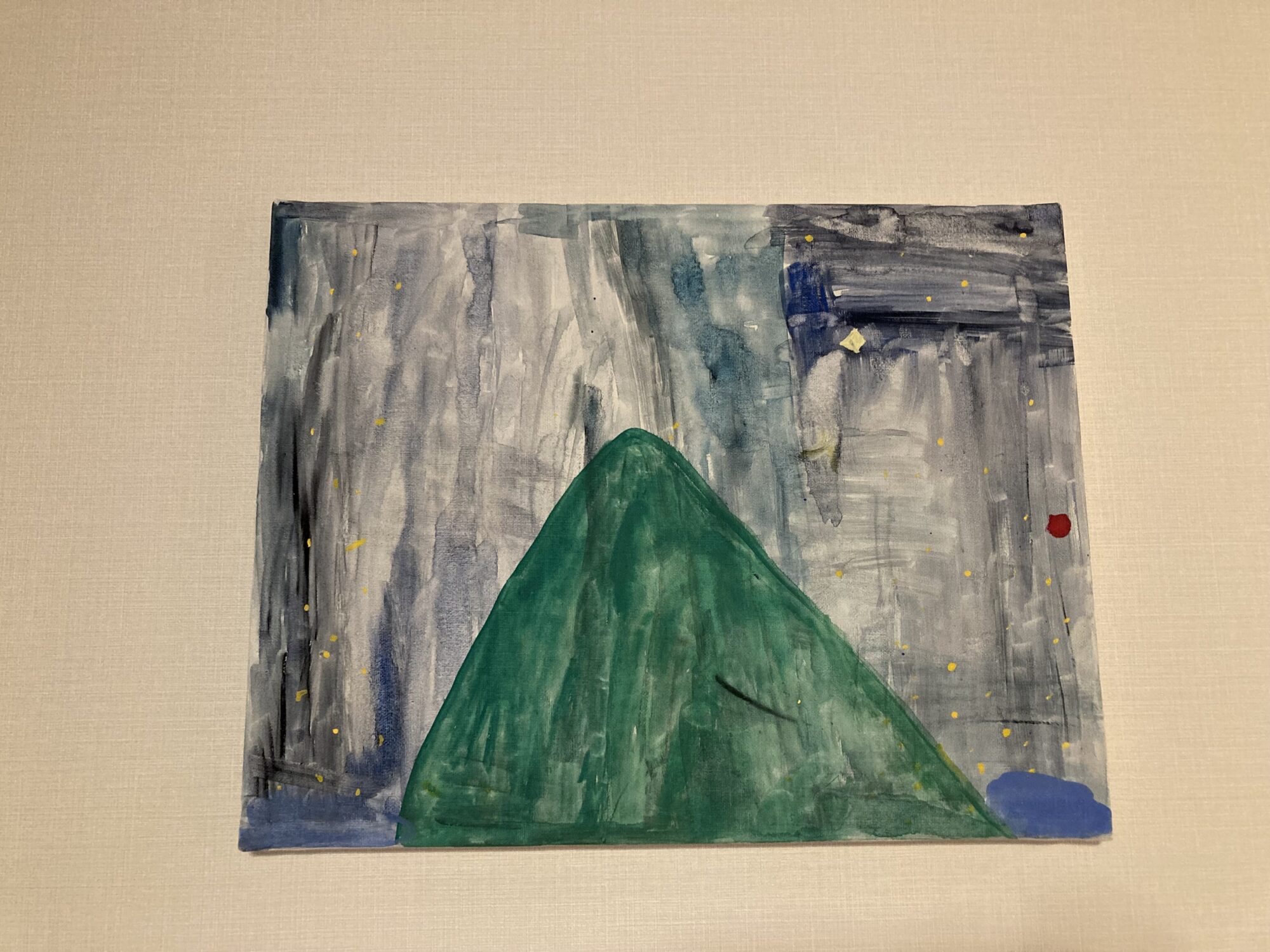 夜空と山かな?どちらもとっても魅力的に描けていると思いました!何色とも言えない、不思議な色合いが美しいと思いました!落ち着いている色合いなのに、自然の元気さも伝わってくる感じがステキですね🎶Good Job!!👍