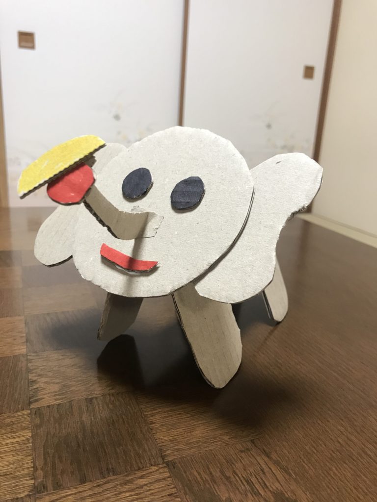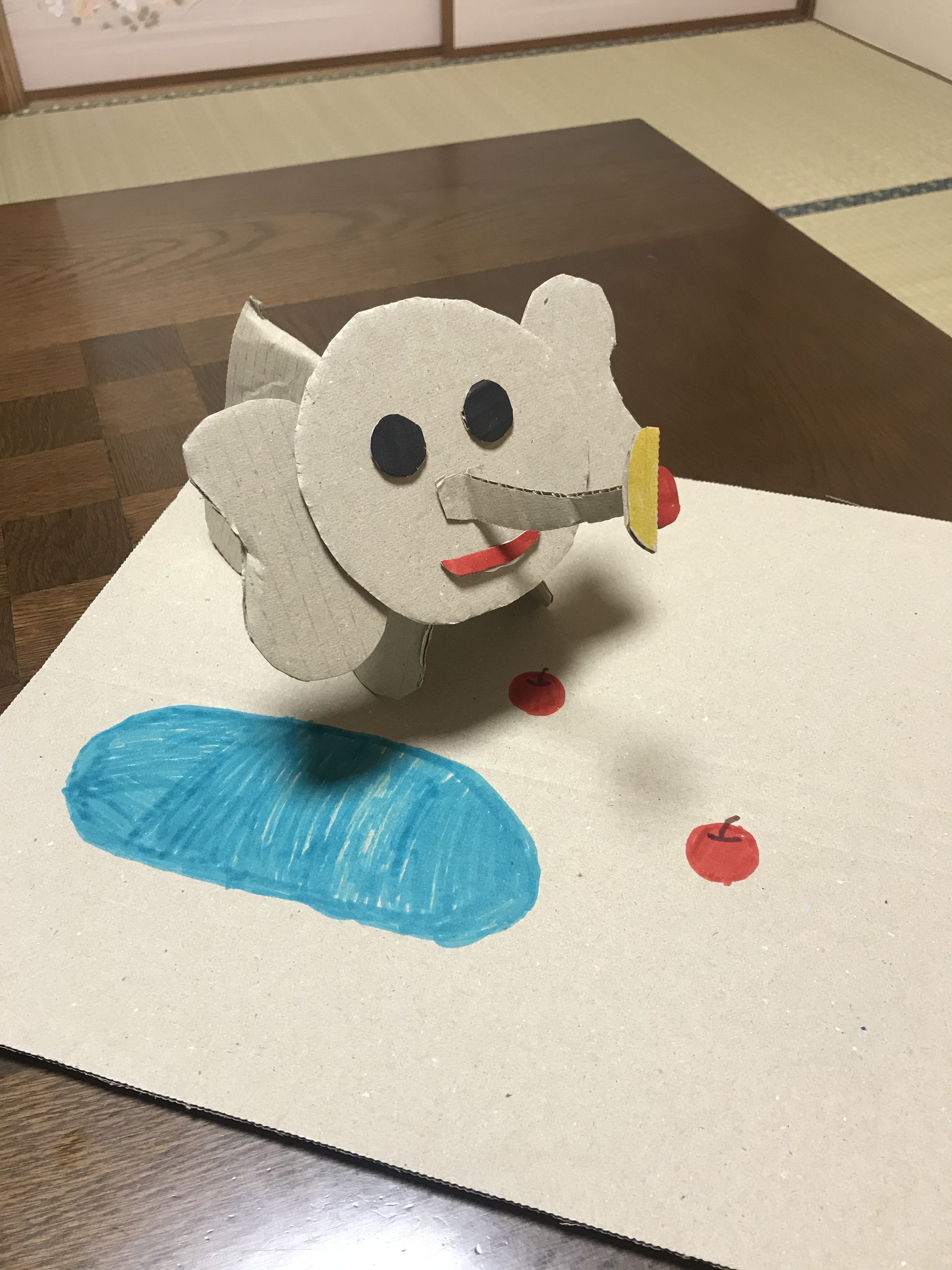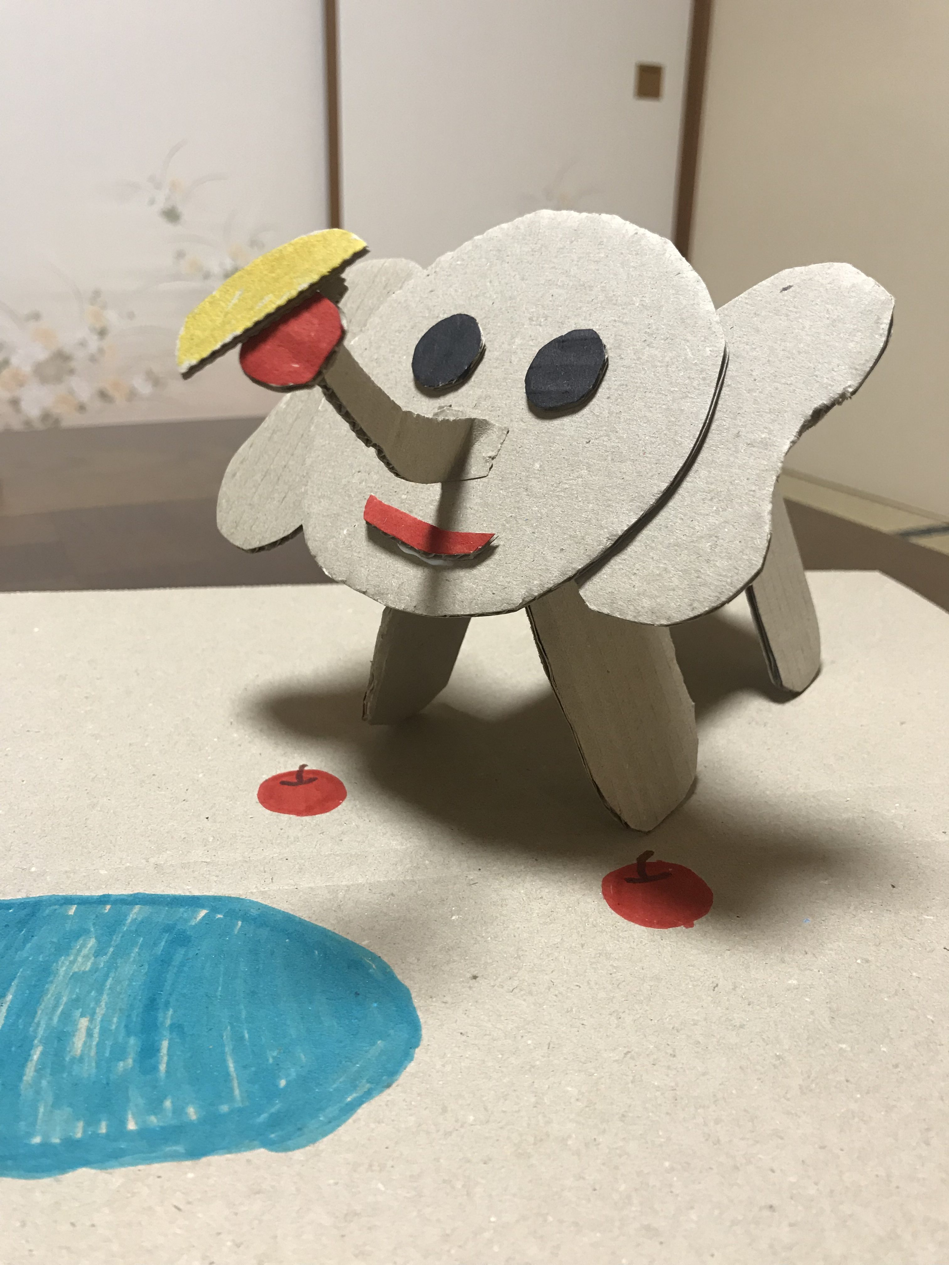 じゅんこ先生 先生2020年4月18日 3:50 PM 鼻の貼り方がすごいね。 段ボールをふたまたにさいて、貼ってる!安定して貼るやり方よく知ってたね! 鼻を丈夫に貼れたから、りんごやバナナをはっても、落ちないでばっちりできてる! かわいいしすばらしい!! ログインして返信する ↓