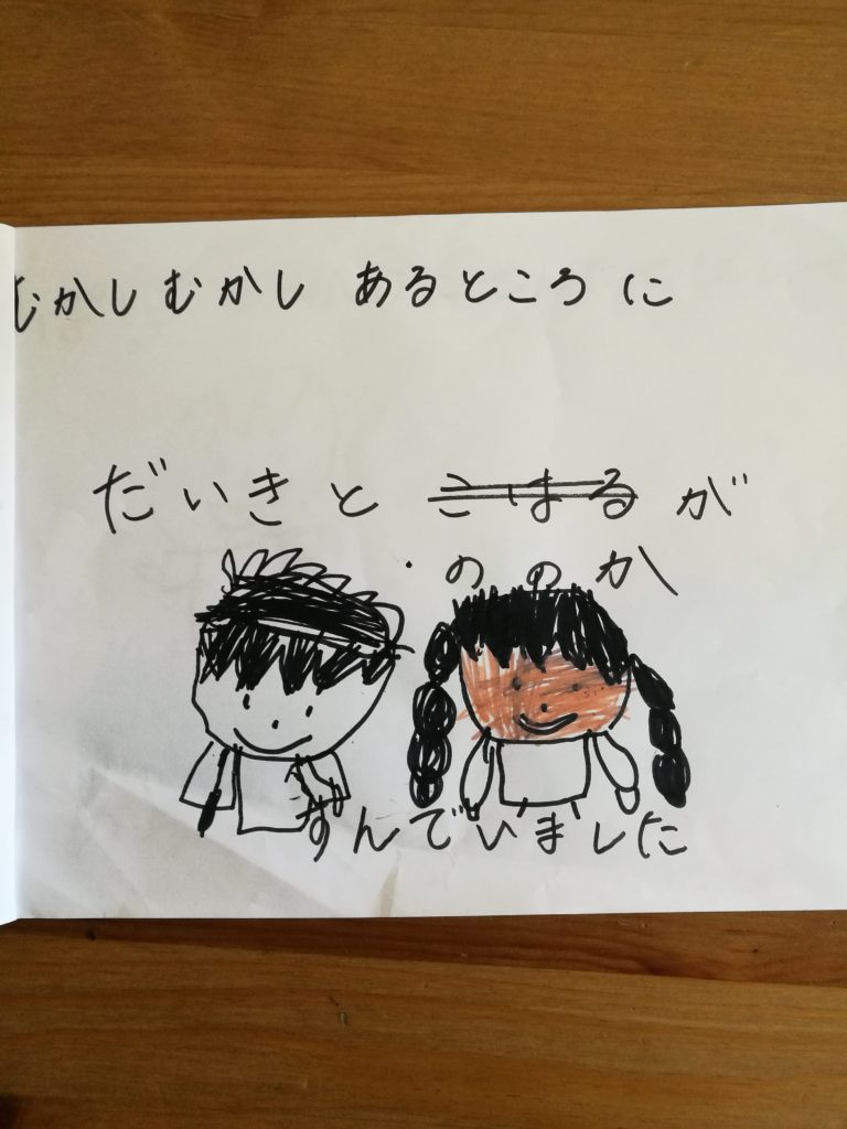 「桃太郎で川に洗濯に行ったのはおばあさんだから・・・ううん!・・パパにしよう!」だいきとはるかじゃなくって・・ここでパパが出てきたぞ!