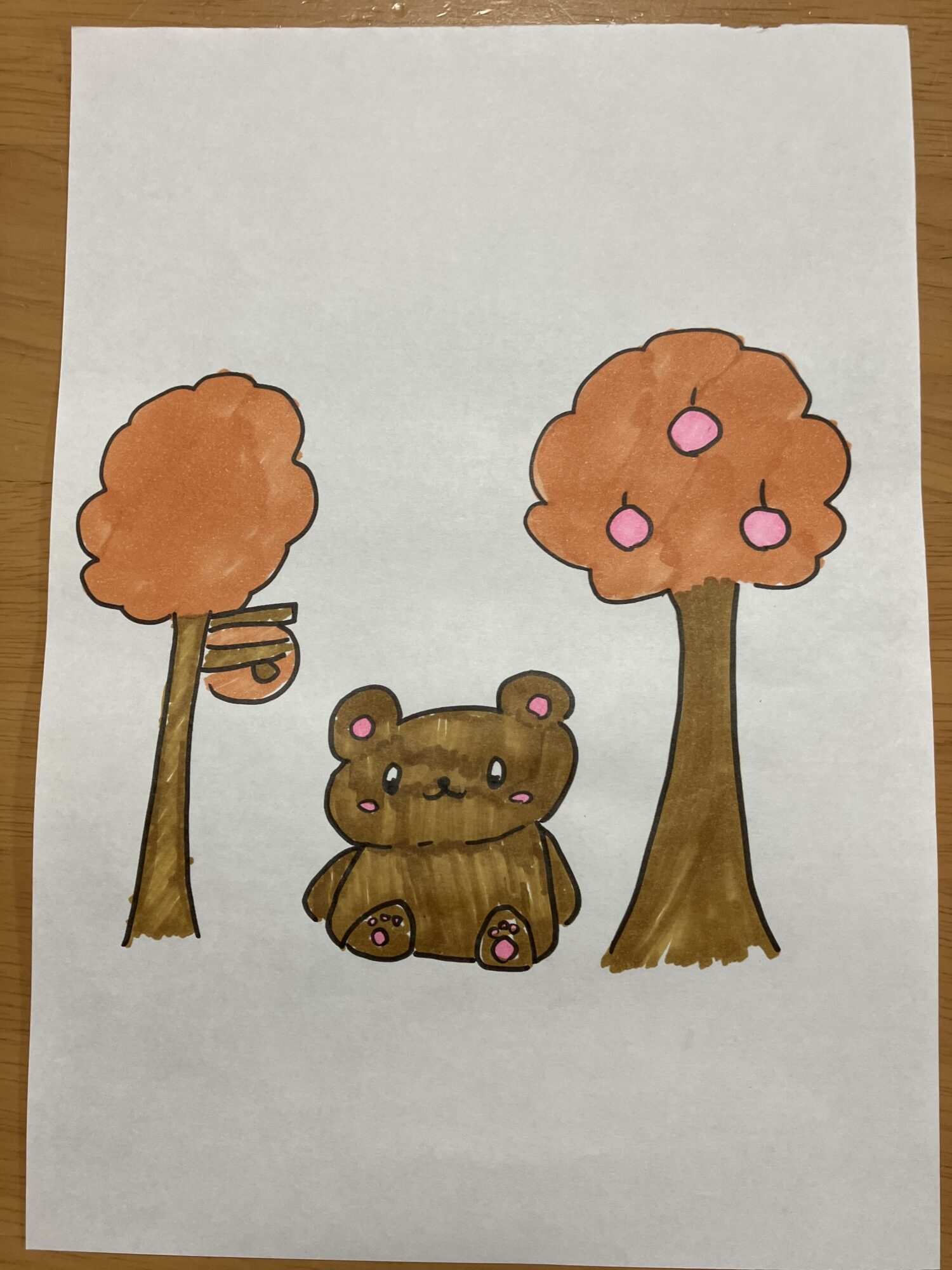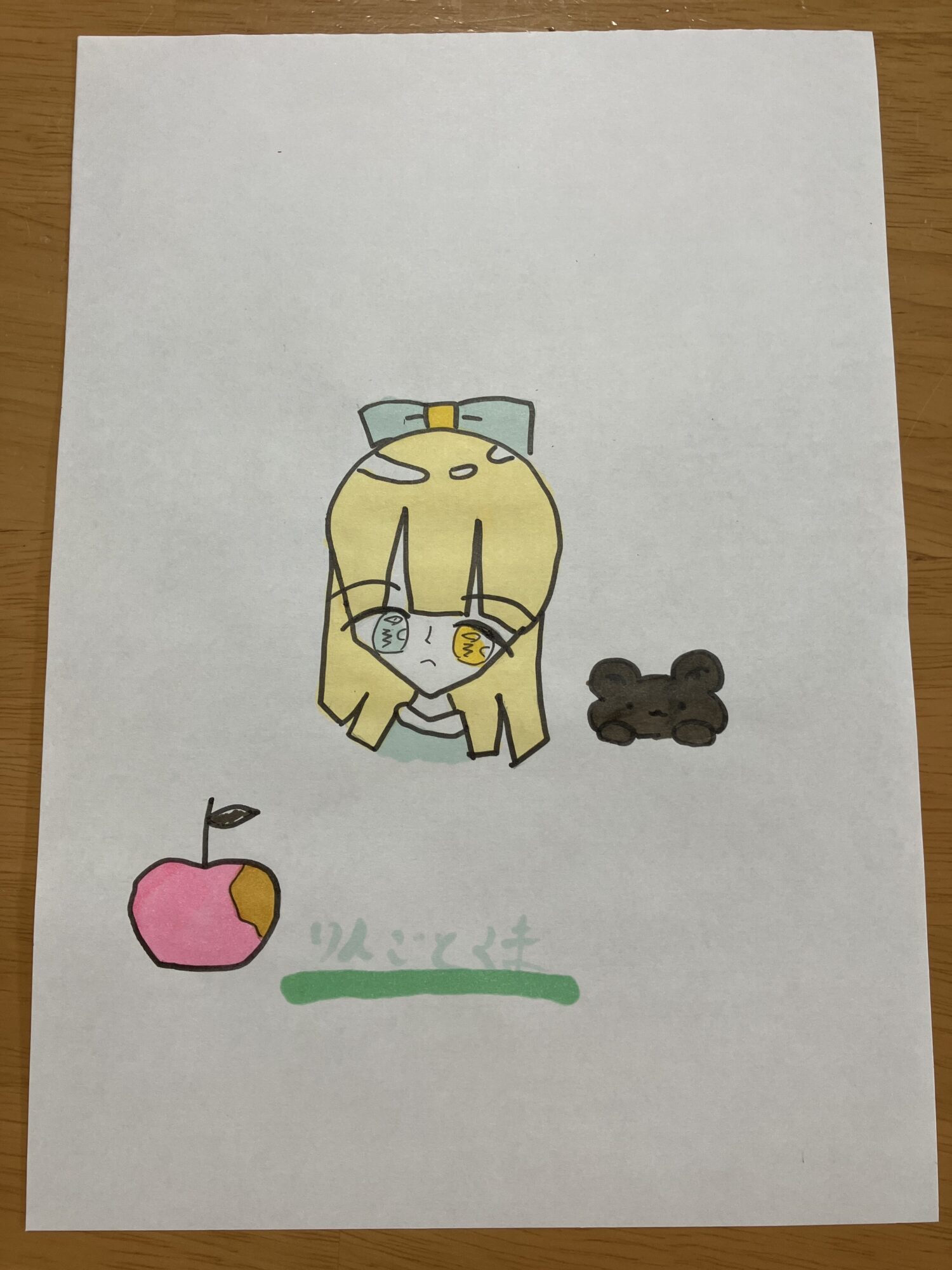 (最後の1枚は女の子とクマで3色、りんごと文字で3色使っています)
