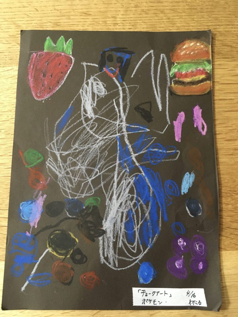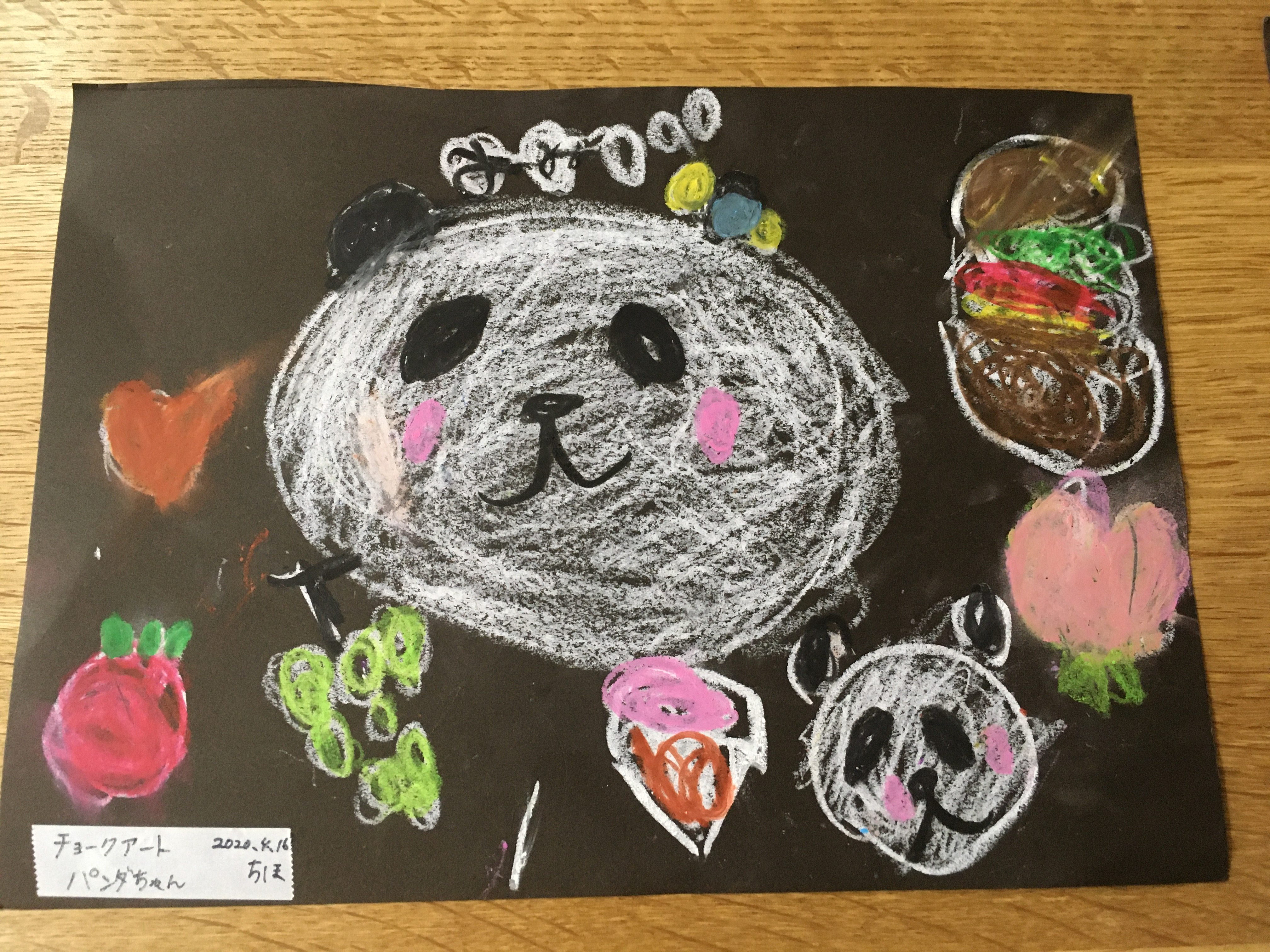 まずはじめに、お化粧のように白のクレヨンで下地を書くなんて!ビックリでした!とっても綺麗な色が描けて子どもたちも親も夢中で描いちゃいました!
