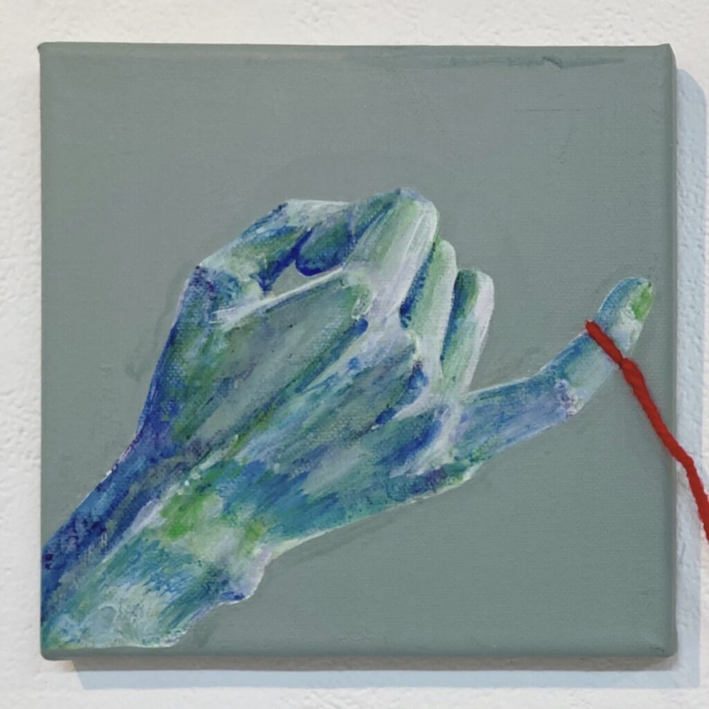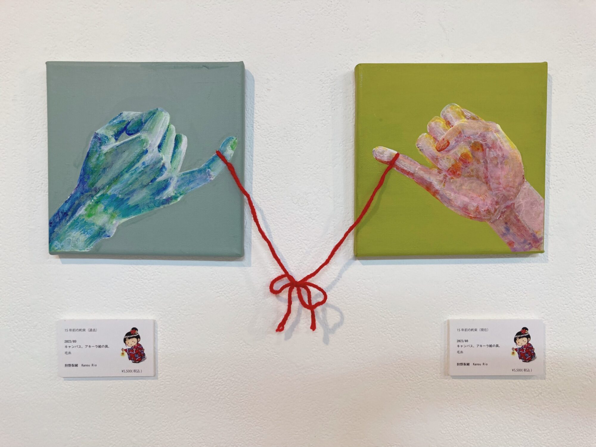 この手はアキーラ絵の具の擬人化で、寒色の方は過去(15年前)にりお先生が十年表彰でもらった当時の絵の具くん、暖色の方は今現在の絵の具くんのイメージで、「15年間未開封で使ってあげられなかったけど、今年ようやく使ってあげる約束を果たせたよ」というエピソードが込められています😌🎨