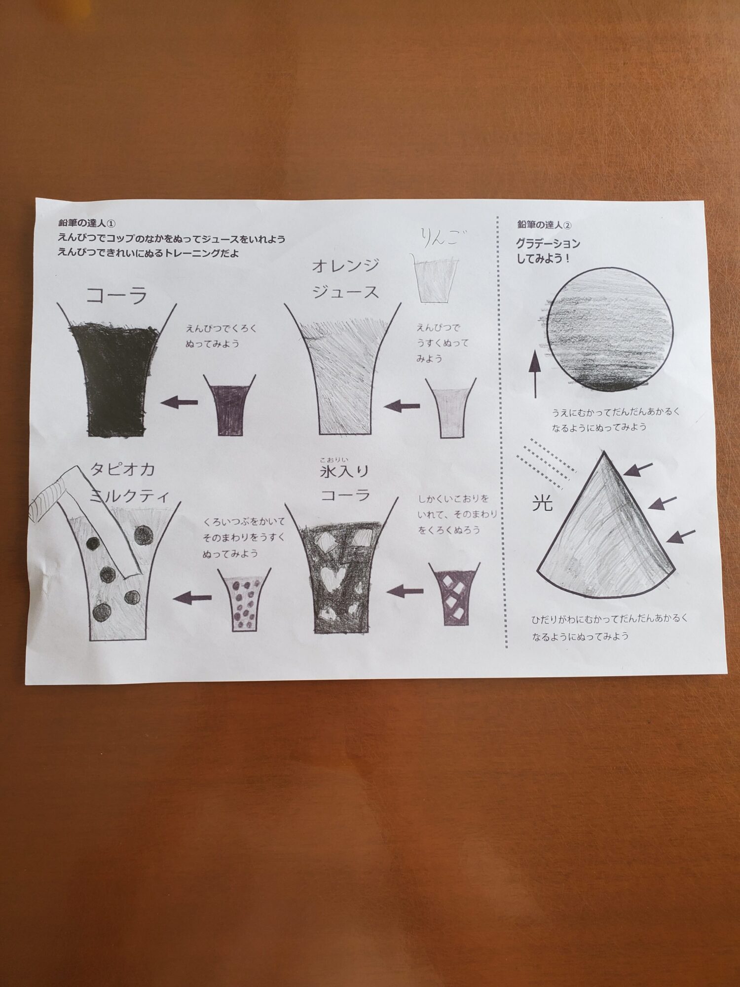 リンゴジュースは、オレンジジュースよりも薄いので、「よーし、うすーく塗るぞー」と意気込みながら鉛筆を動かしていました。たくさん気づいてくださってありがとうございました。