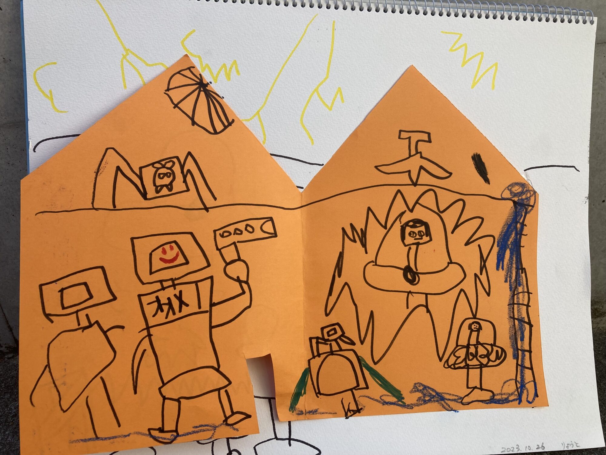 絵もいっぱい描いているし、この間は紙コップを便器に見立て折り紙で顔を作ってスキビティトイレを作っていました😅
