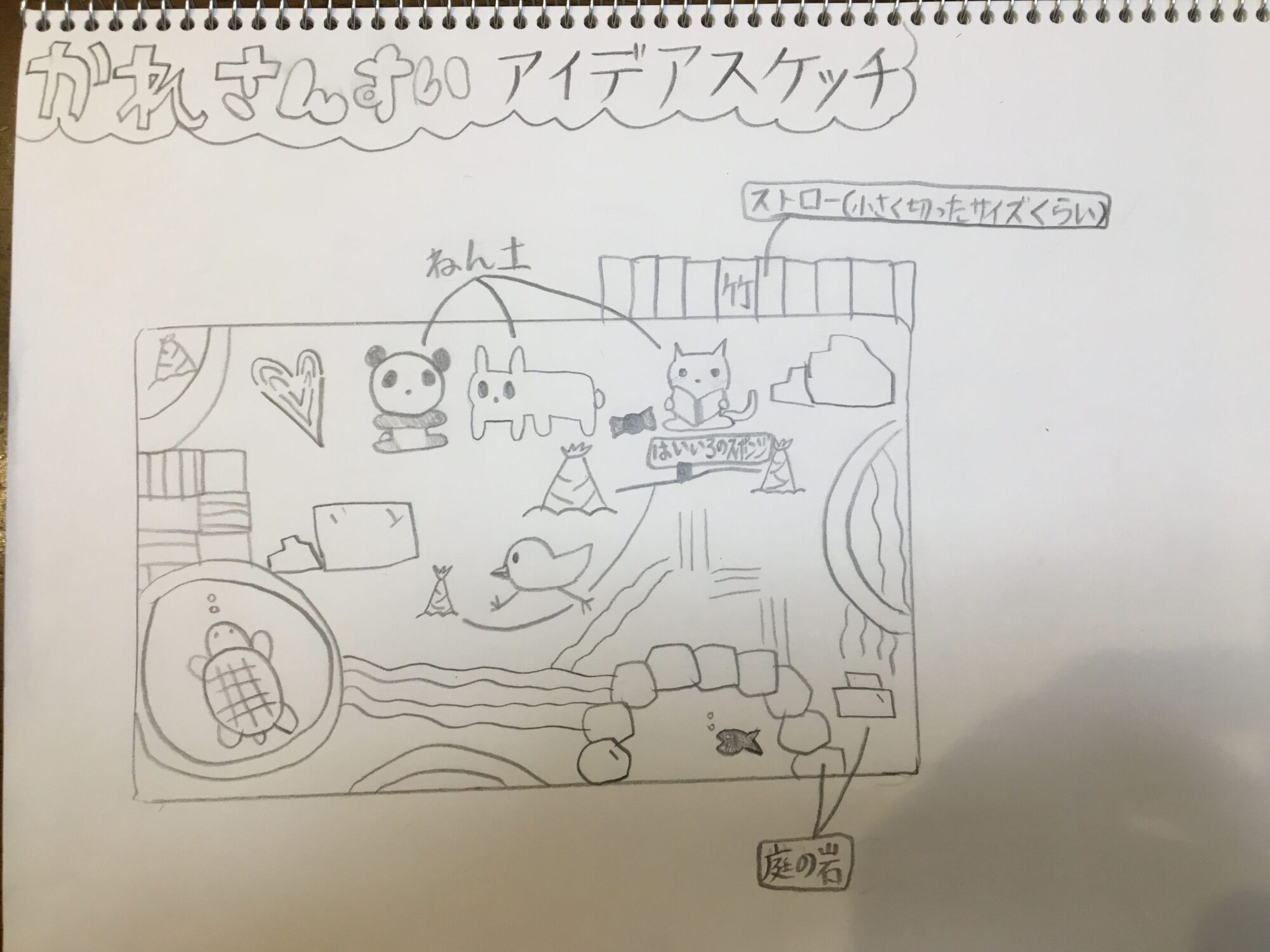 レッスン中に見た、緑色のストローで竹を作っているのを参考にして、同じように竹で囲んでみようと思いました。