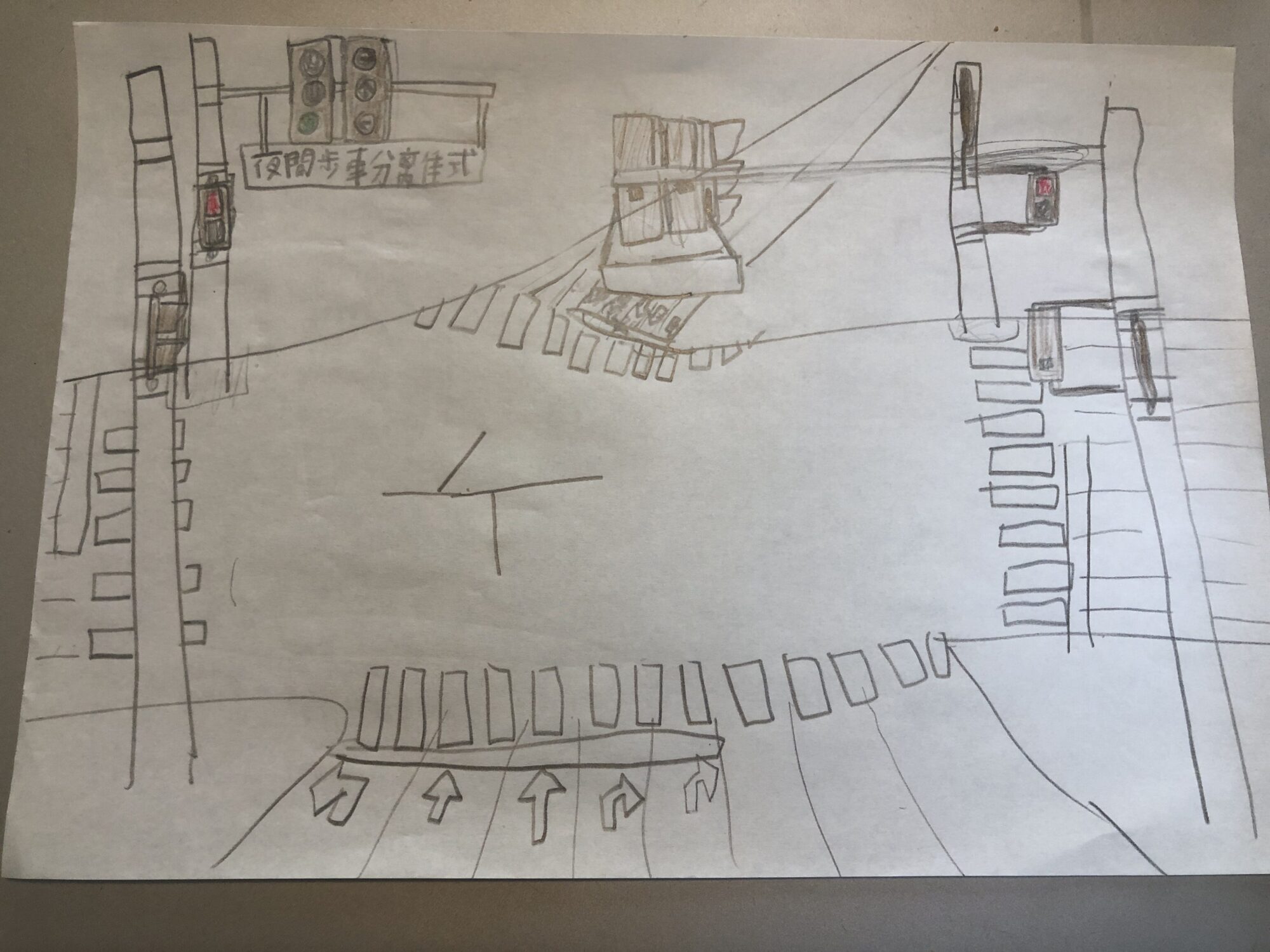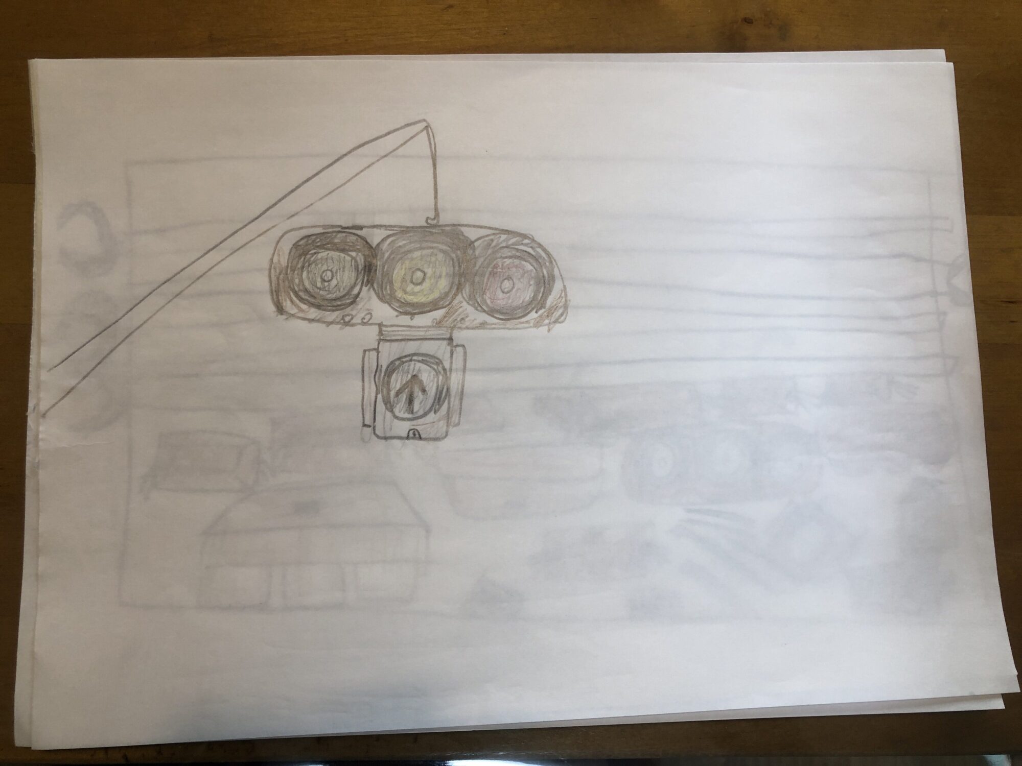 信号機は勿論、道路やトラックなども、普段じっくり見てるんだな、という様子が伝わってきます!すごく丹念に描いてありますね!線がカッコよくて素敵な絵だと思いました!Good Job👍!!