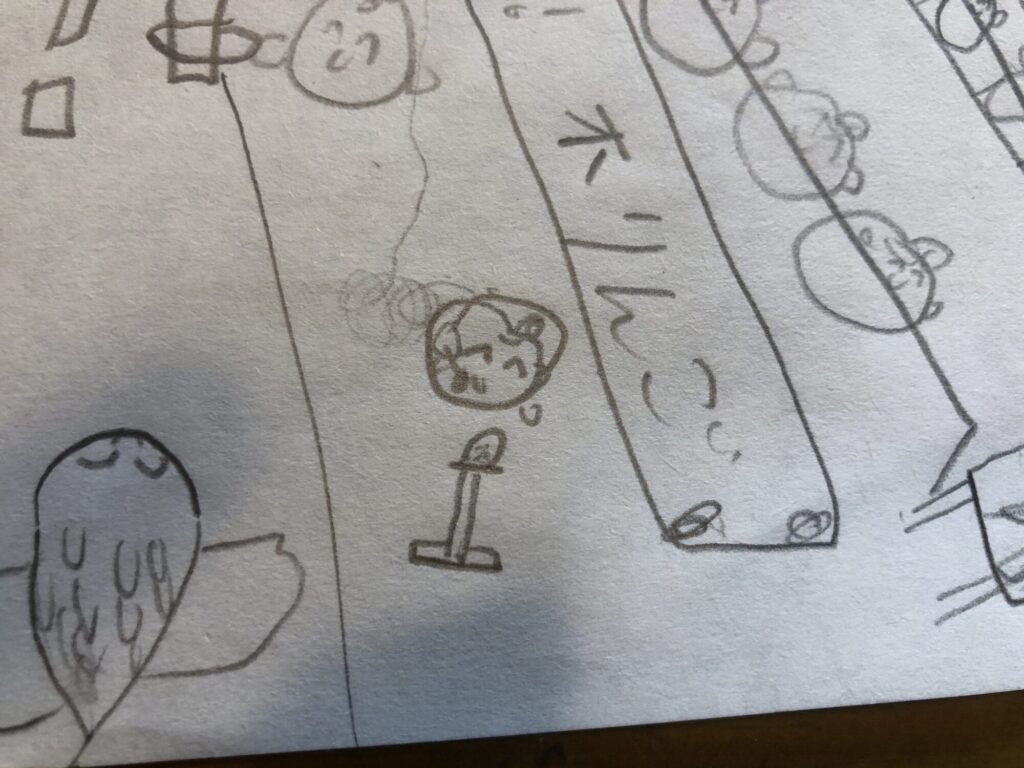 息子の中でりんごの世界が色々作り上げられています。個人的に二枚目のマイクとイヤホンを付けている実況中継りんごが好きです。