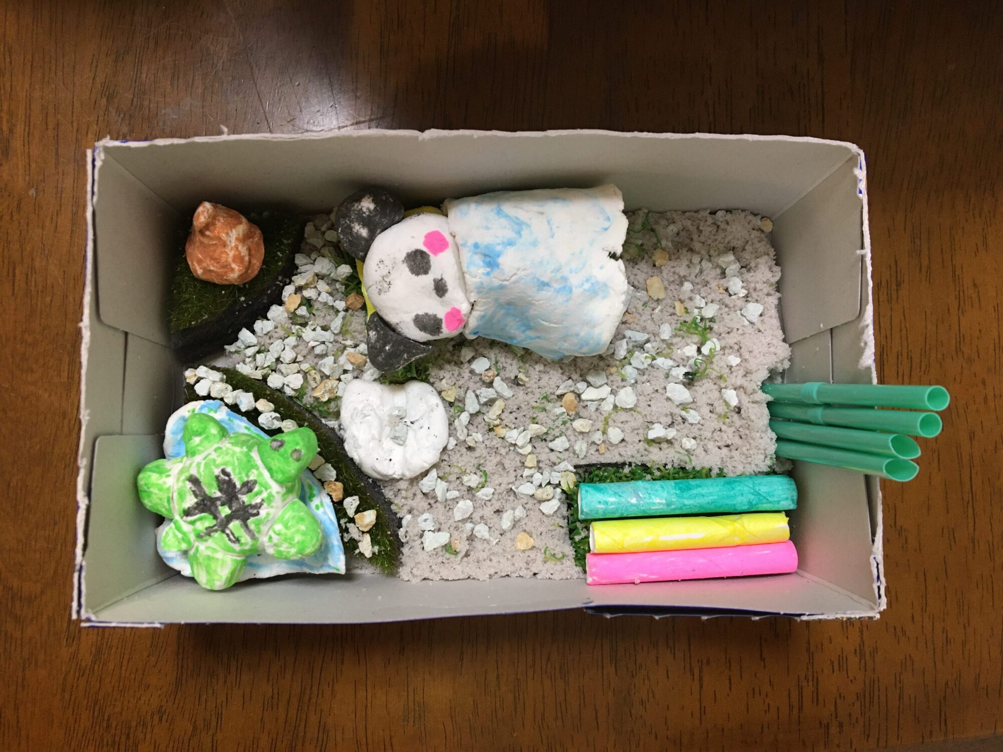 たくみ先生 先生2023年11月29日 9:04 AM こんにちは。たくみ先生です。 ストローを竹に見立てるとはさすがですね✨ その考えはなかったです! 地面のこだわりも素晴らしい! パンダさんとカメさんが自然の中にいるのが伝わってきます。 とても癒される作品をありがとうございます(^^) ログインして返信する ↓