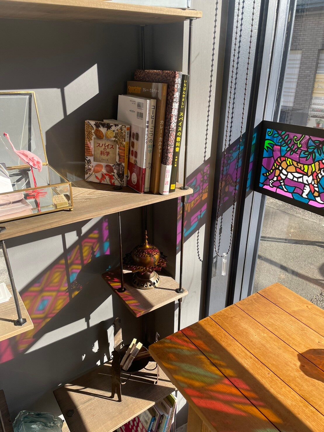 陽が差して、店内に映る綺麗な光が、幻想的で、素敵なグループ展ですね。
