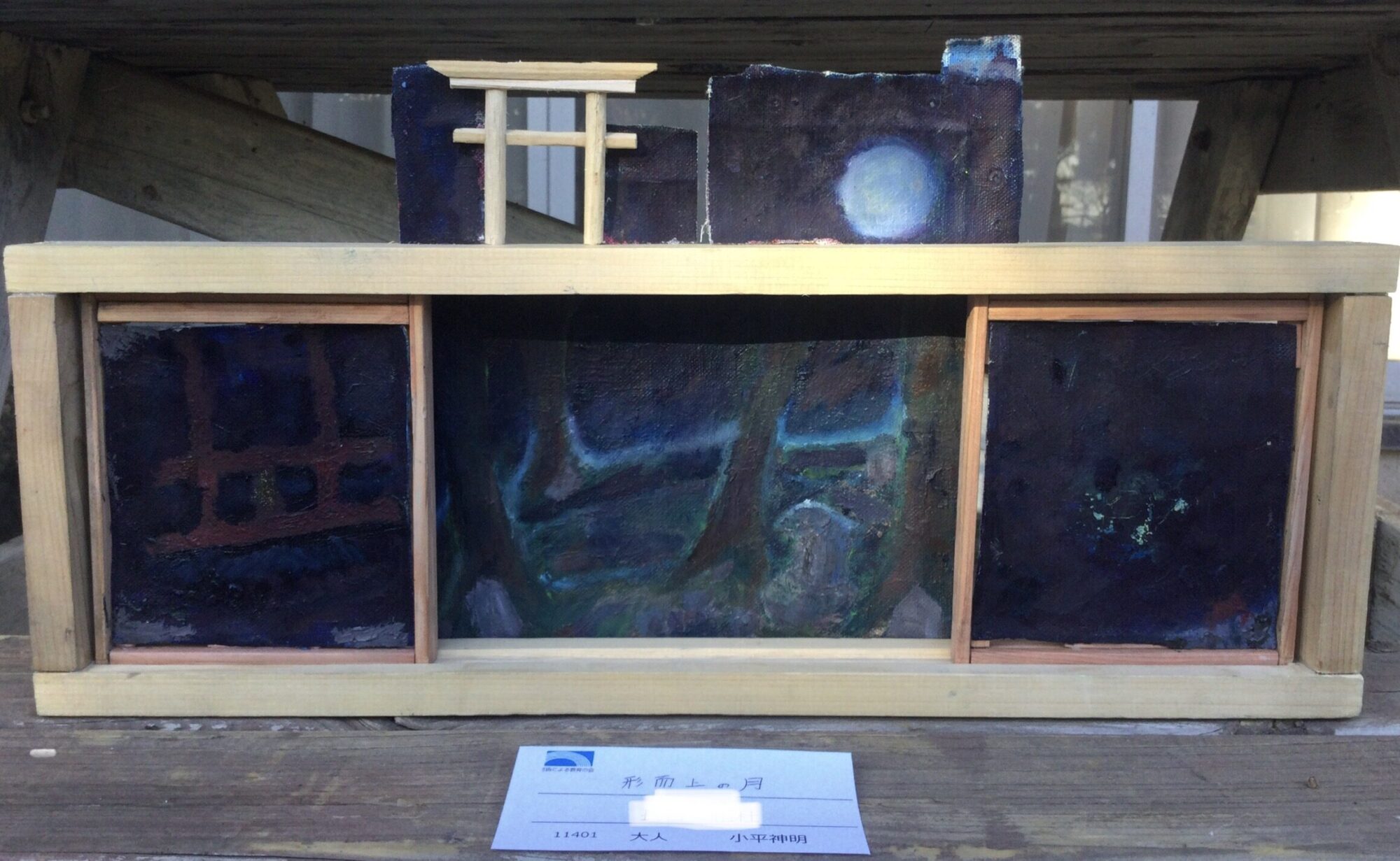 この作品にはいろいろな黒が使われていて鳥居や月がすごくその黒によって綺麗に見えました。素敵です!