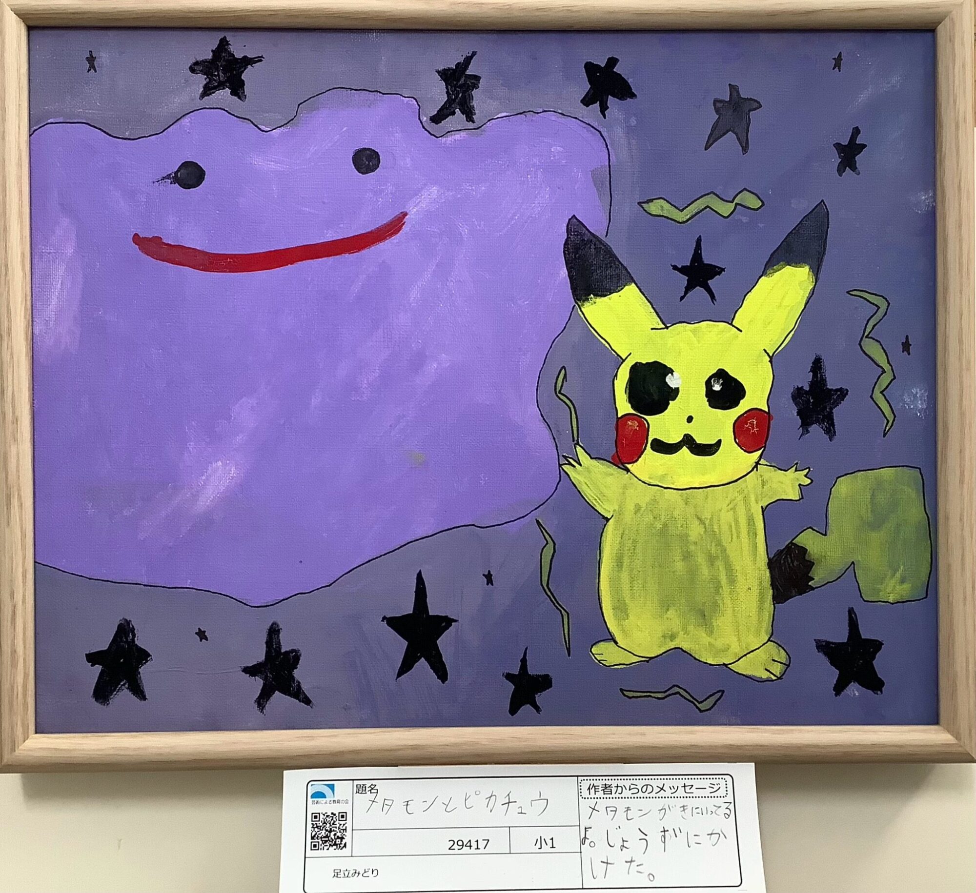 白石美奈先生 先生2024年1月8日 12:52 PM sawaちゃん キャンバスいっぱいに大きくかいてあるのがいいですね! ペンで黒いせんをかいてしあげたのも、見やすくなってよかったですね。 メタモンのにっこりおかおがかわいいです! ログインして返信する ↓