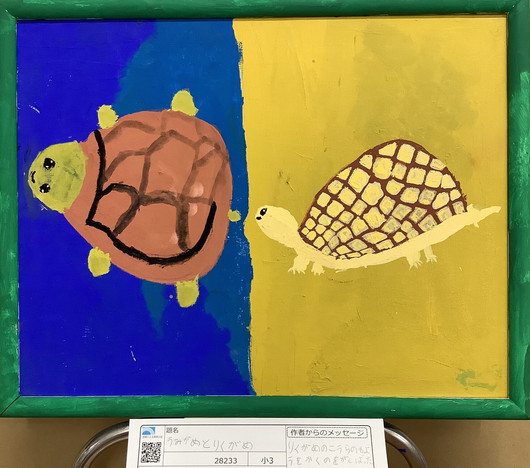 どっちのカメもかわいい! 特に、陸カメのこうらのもようが細かくてすごい!