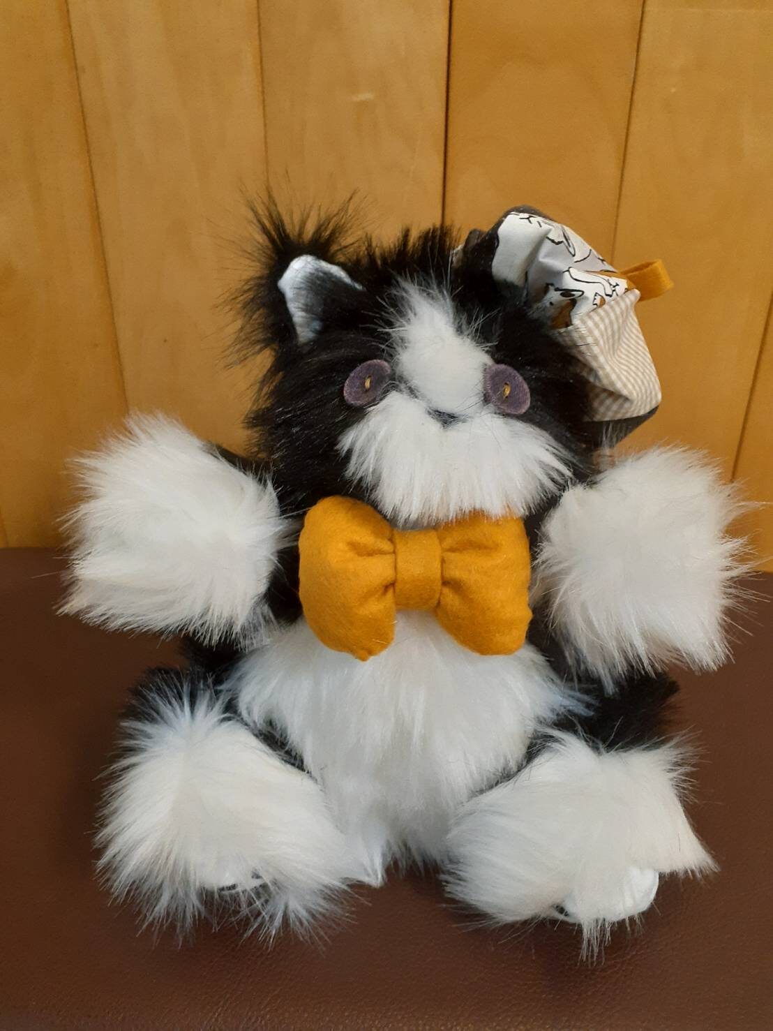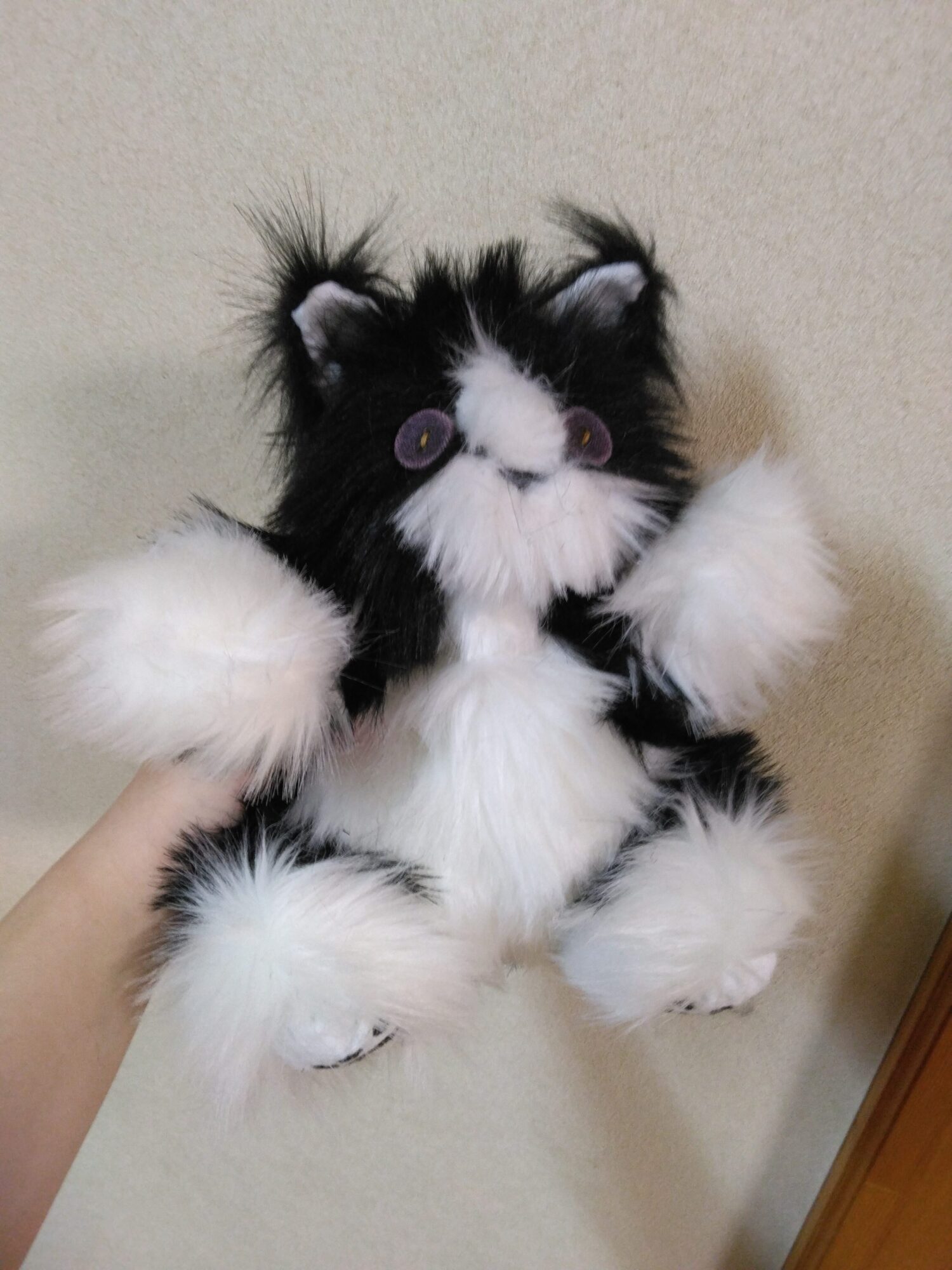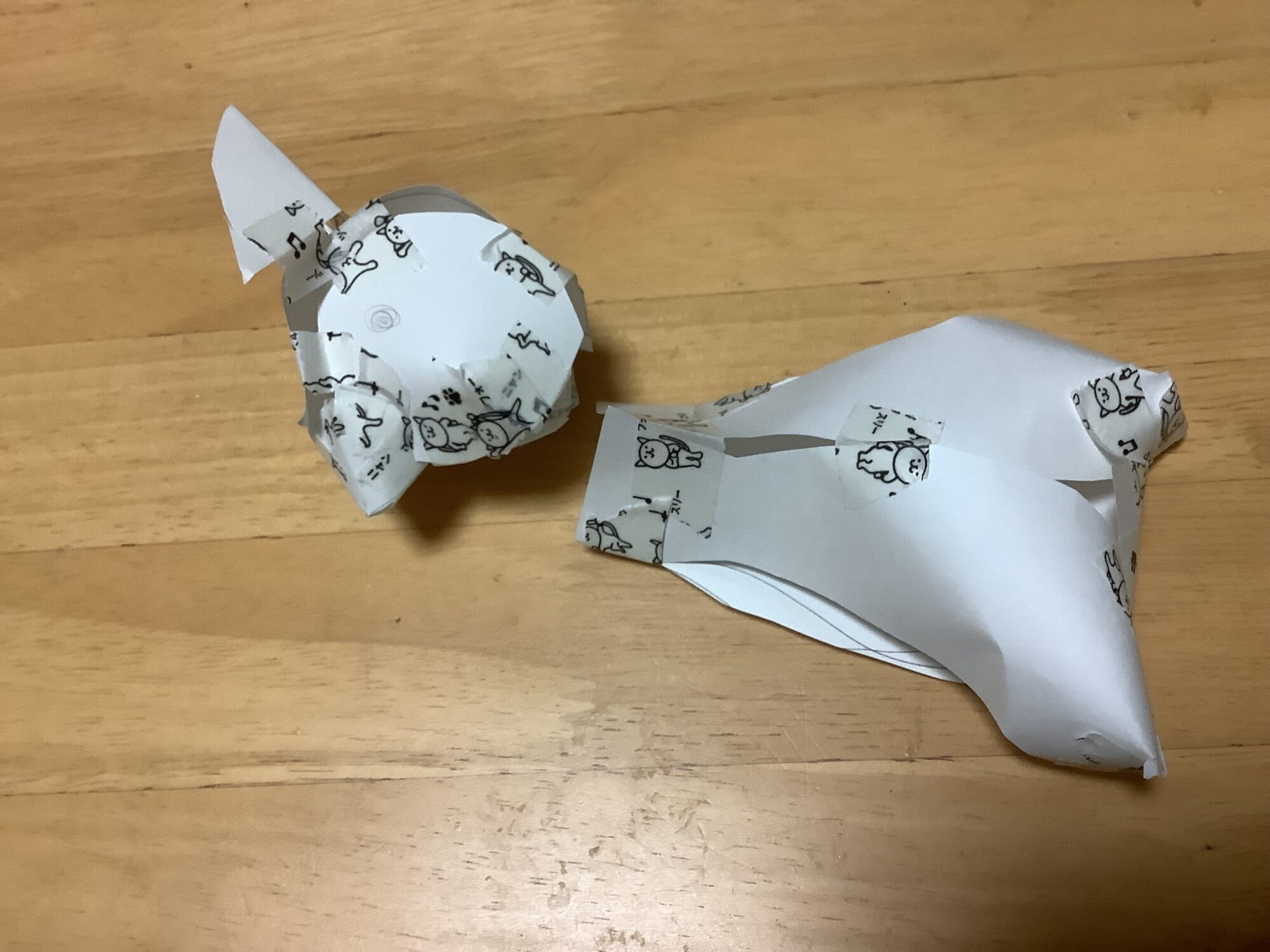 紙とマスキングテープで型紙を作り、フェルトとわかりやすい色の糸で試作を繰り返しました。試作を繰り返すうちに最初の案とは服装もサイズも変わってしまいましたが、可愛く出来上がったのでよかったです❤️