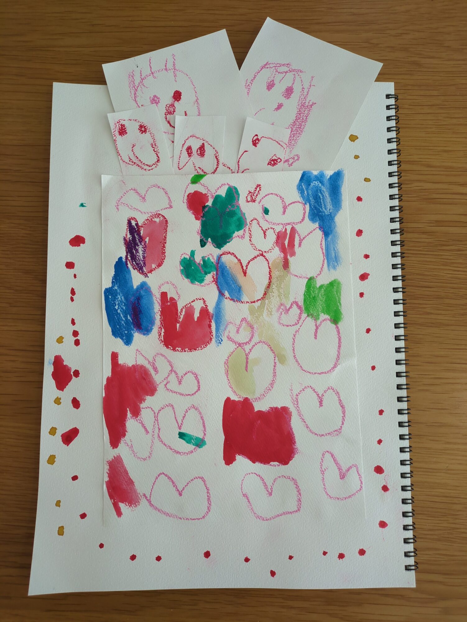 めちゃ可愛いい!あったかそうなピンクや赤が多い印象のお絵描きですね!