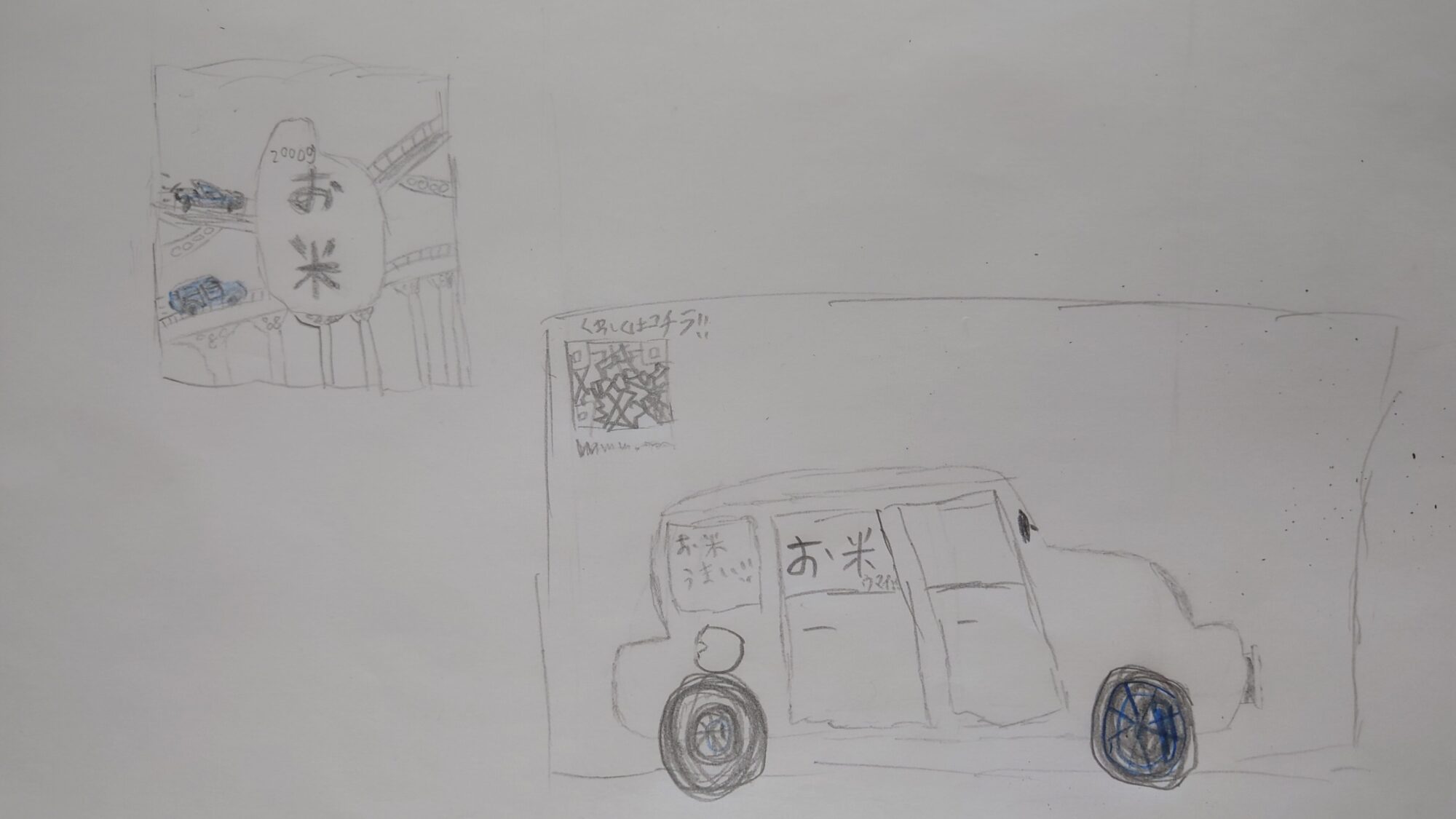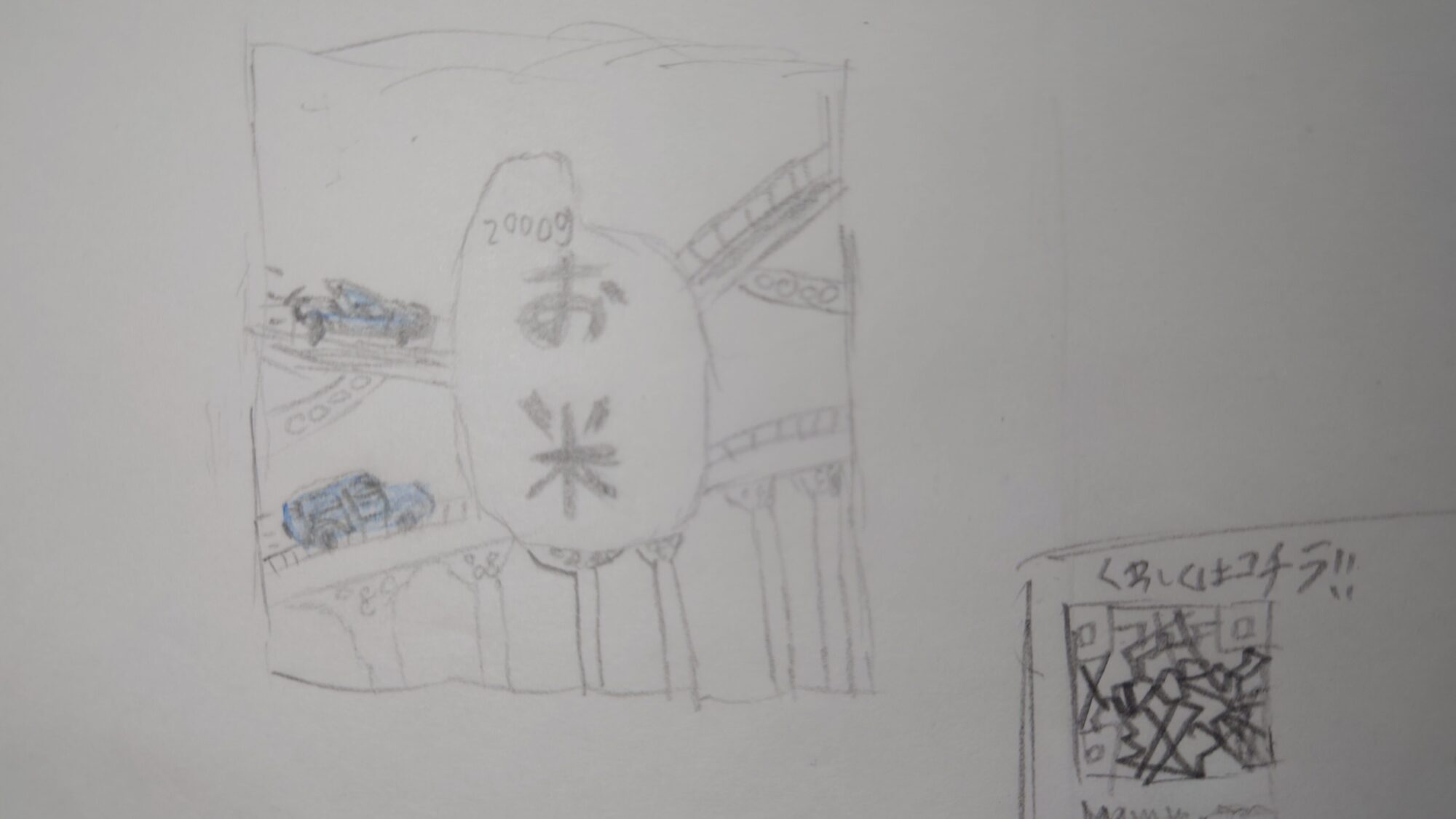 車とQRコードと2000gも入れました。