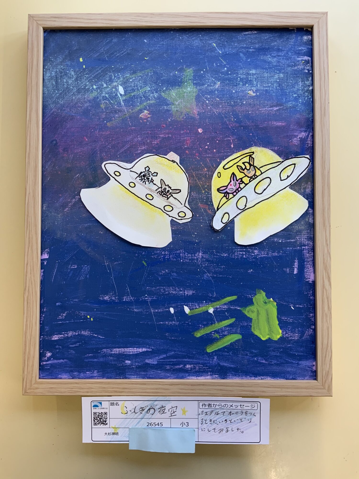 ささきほの アートフレンズ職業・専門:大学生・版画2024年1月21日 11:58 AM 飛び散っている絵の具が、たくさんの星のようにキラキラ輝いてステキです! オーロラのピンク色などがあることで、夜空をグッと深い大きい空に見えますね イーブイ達も楽しそうです! ログインして返信する ↓