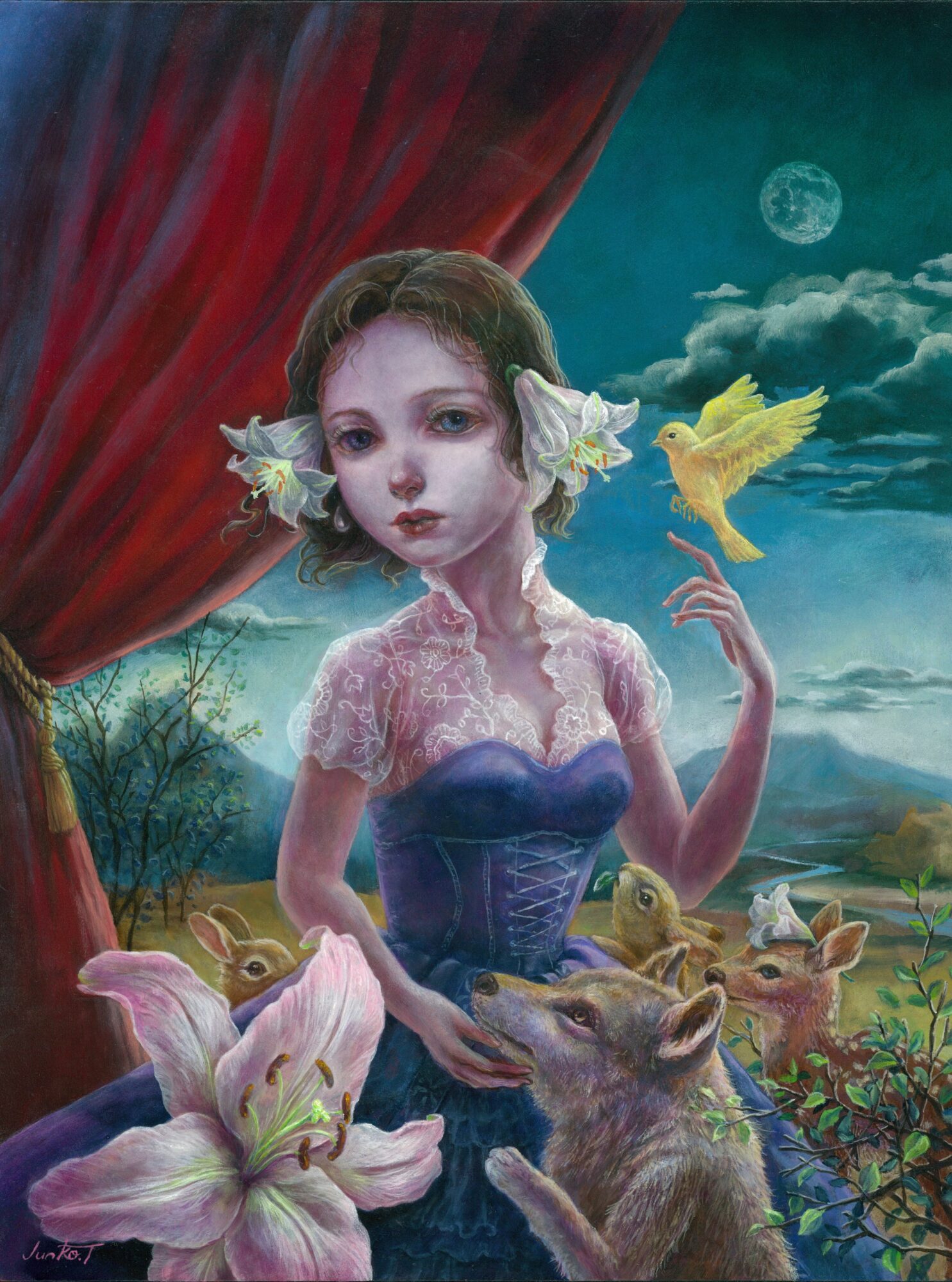 2020年から幻想絵画の鬼才、建石修志氏に混合技法を師事。 元アニメーター