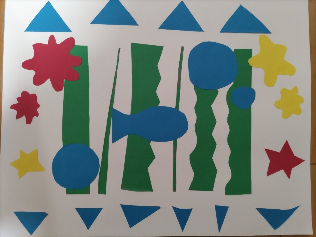 複雑な形をハサミで上手く切り取れていますね!!海藻の中で泳ぐお魚さんがかわいいです!🐟