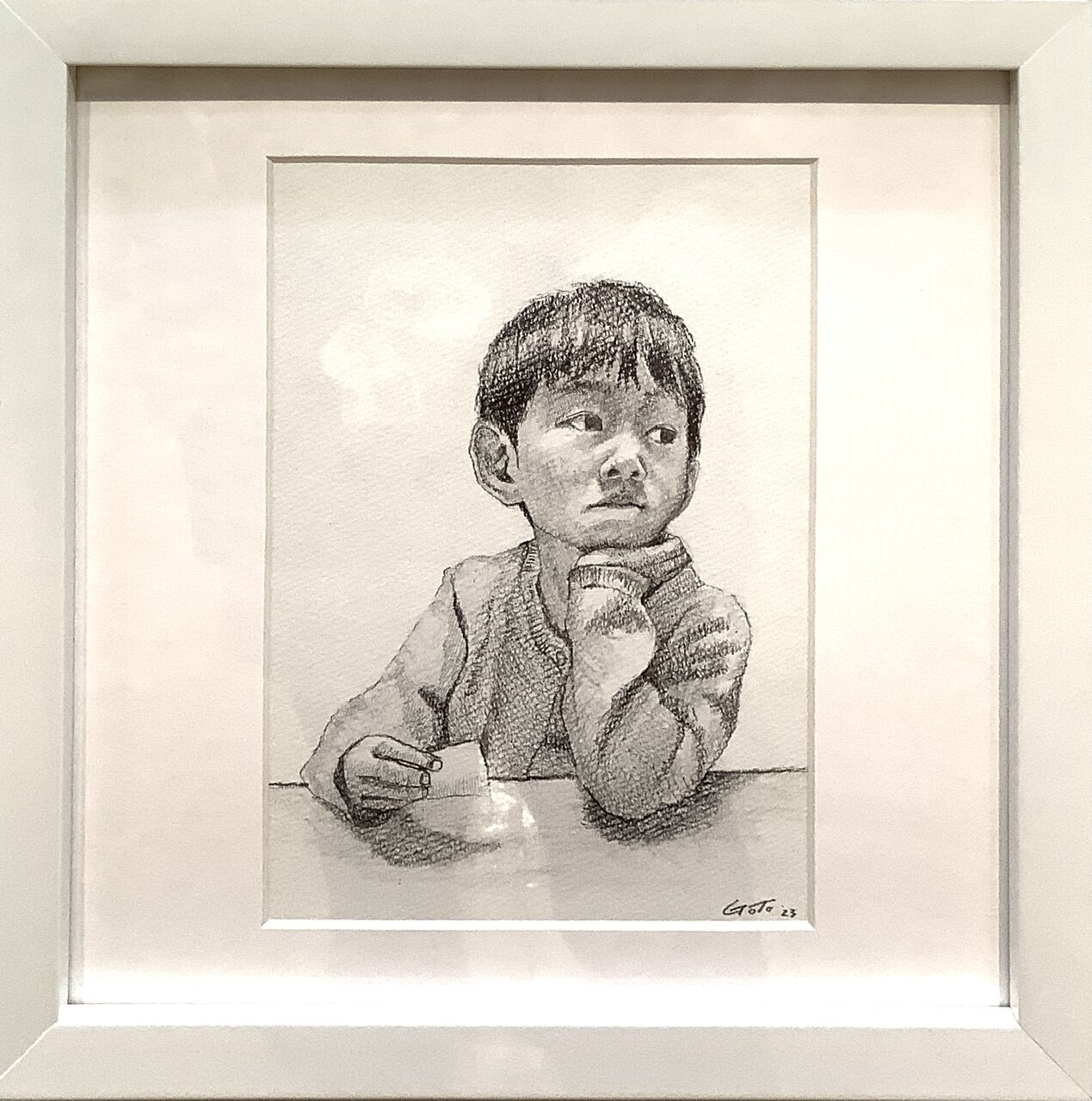 息子さん、何年か前は赤ちゃんの絵でしたがもうこんなに大きくなられたのですね。こういう何気ない表情が一番イケメンだったりするんですよね!素敵な瞬間の絵がとても素敵です