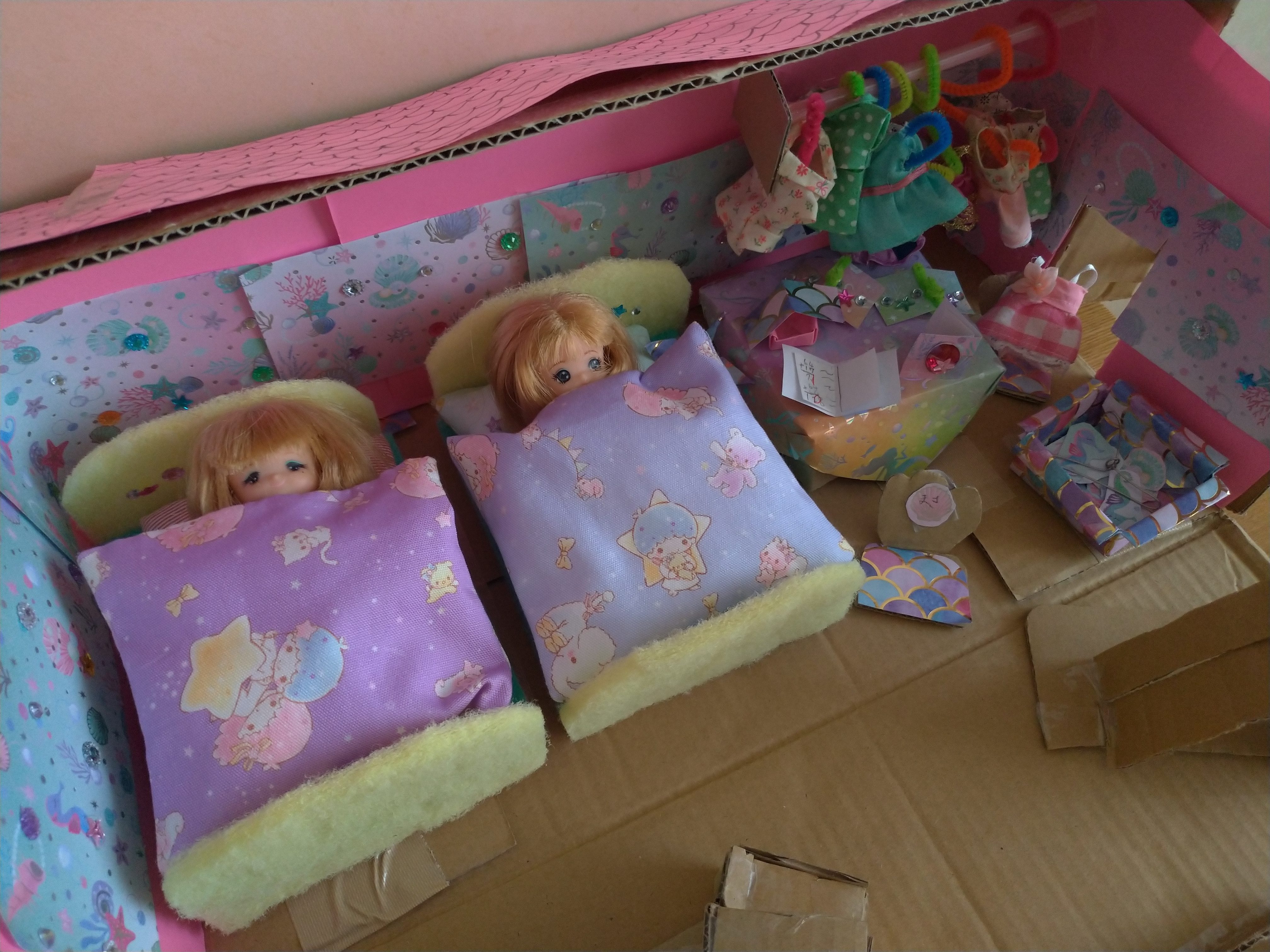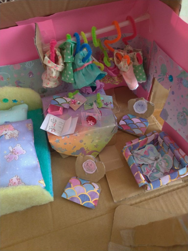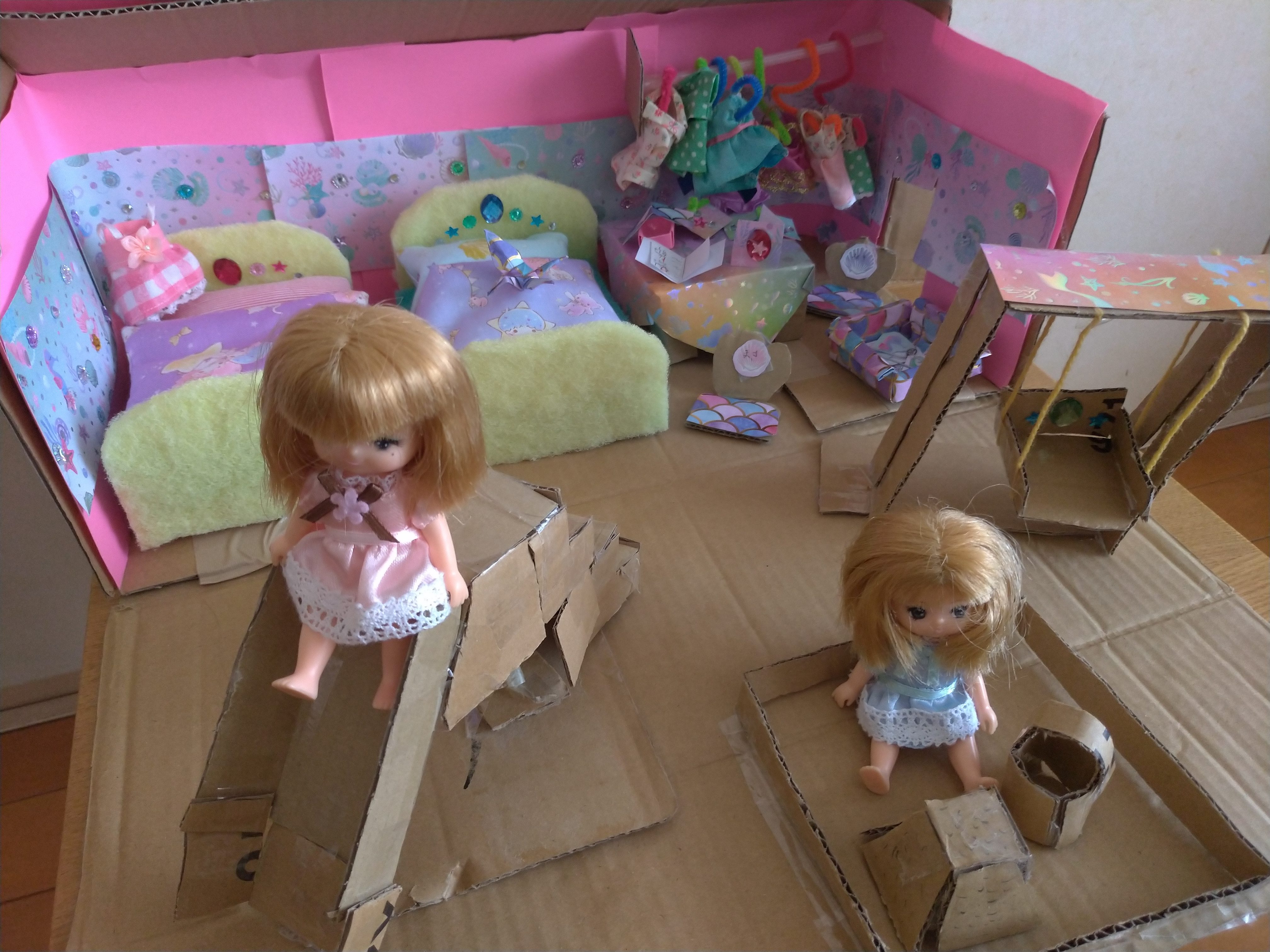ダンボール、100均の材料で作りました。