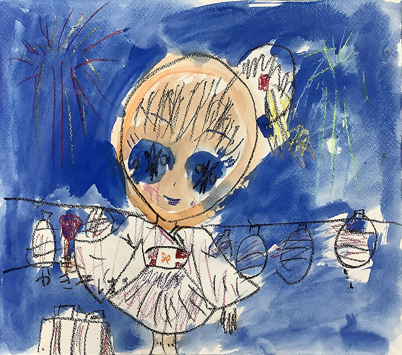 かわいいゆかたをきて、めいっぱいおまつりをたのしんでるようすがつたわってくるね。
