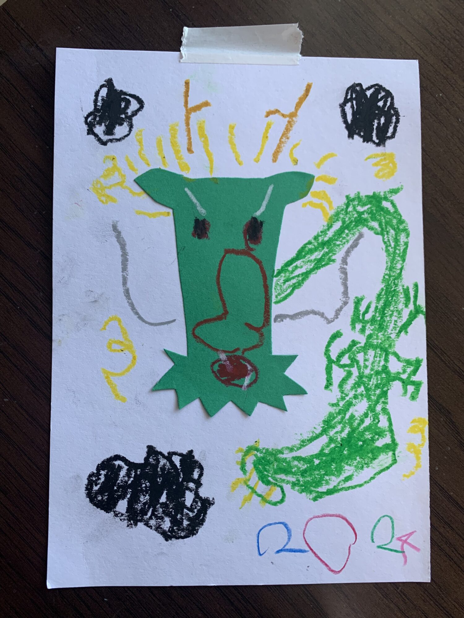 カッコいい龍ですね!🐉紙を貼ってつくってあるところと、クレヨンで描いてあるところがあるのがカッコよさのポイントだと思いました🧐