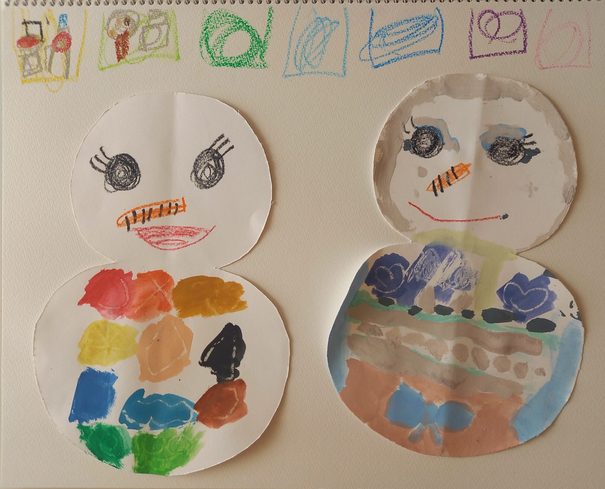 カラフルなゆきだるまさんもすてきだし いろまぜでつくったスペシャルなえのぐのゆきだるまさんもいいなぁ!