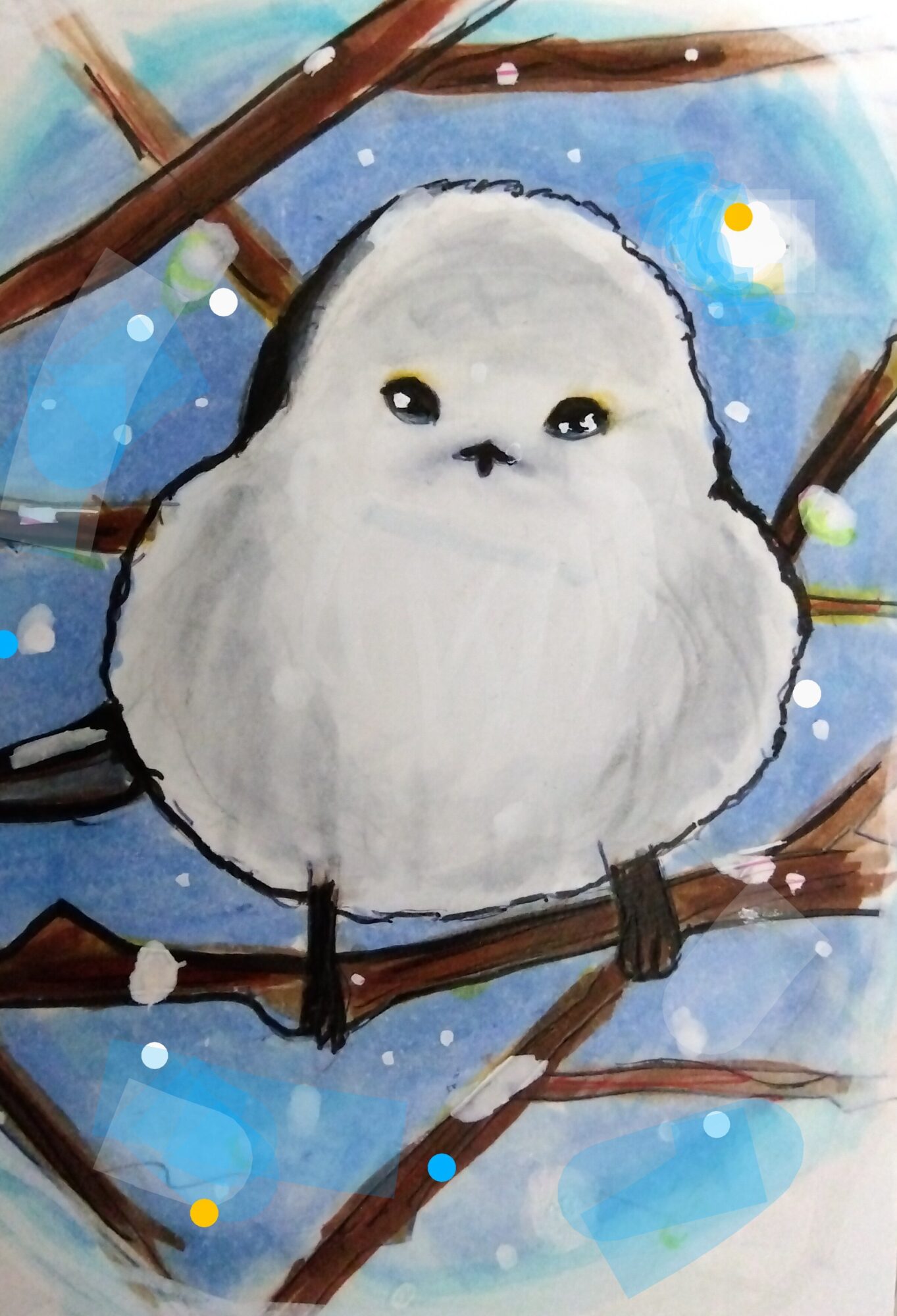 ふわふわのシマエナガちゃんがとっても可愛いです!アウトラインの入れ方も強弱があってオシャレですね