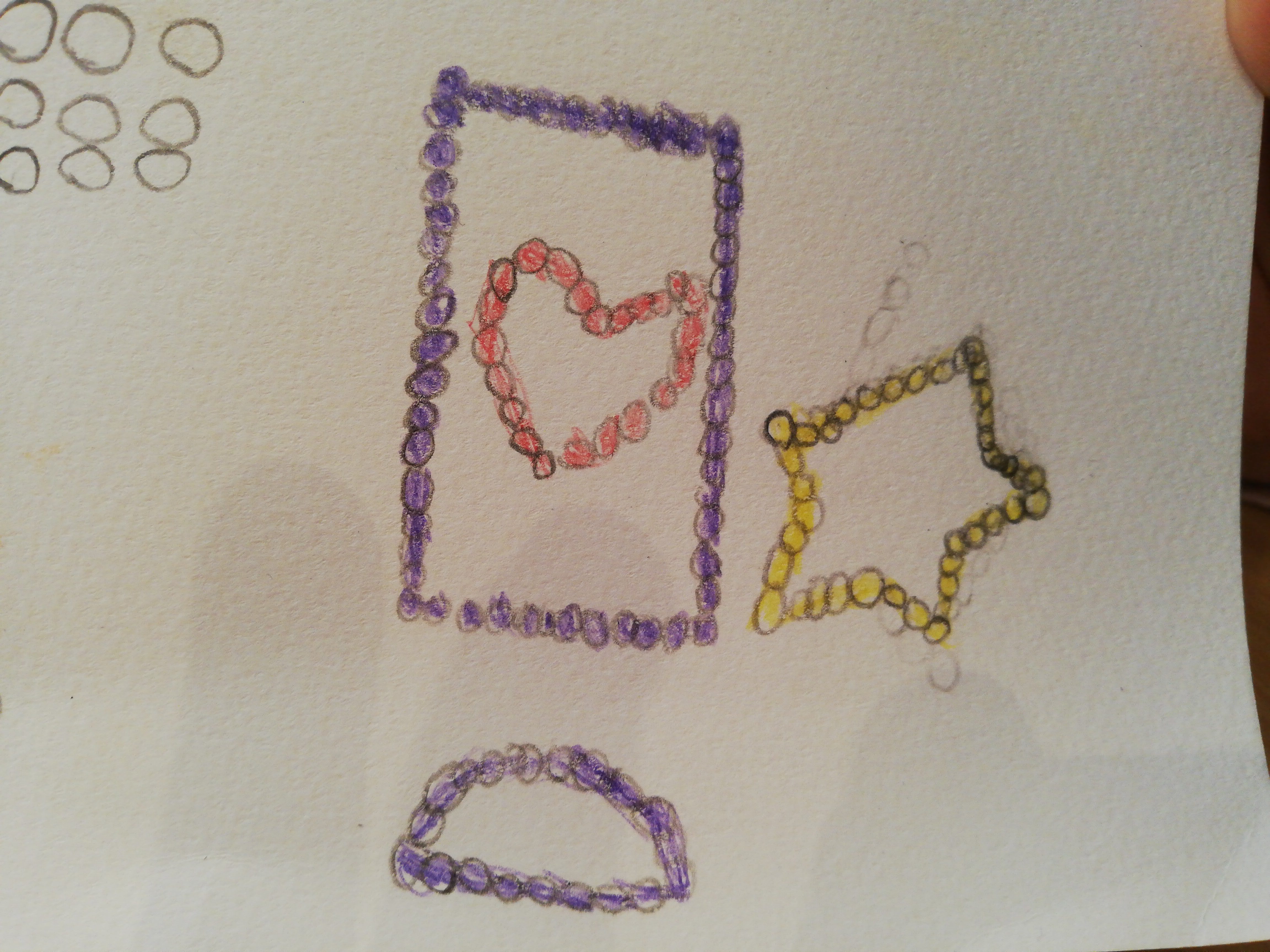 meiriちゃん ありがとう! シモダン先生もこのタイプのドットアートはあんまりやったことがなかったけど、たのしいね! ほんとにジュエリーみたいでデザイナーのきぶんだね! こまかいかたちをきれいにならべていてきれいですよ!