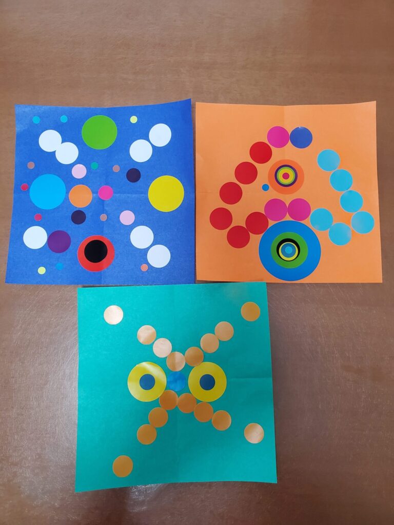 どんなふうにシールでデザインしようかな、なんのかたちにしようかな、どう組み合わせようかなとあらゆる行程を考えて楽しんで取り組めたようです。