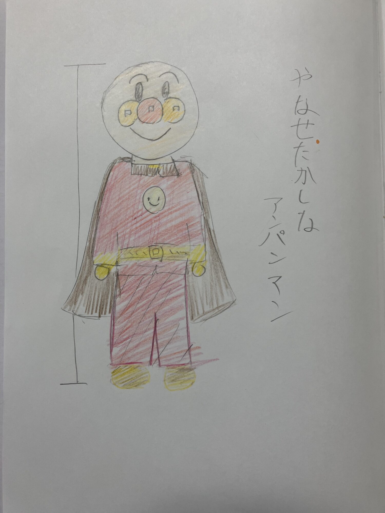 色鉛筆で描いたアンパンマンはなんだか背が高くなり「やな“せたかし“なアンパンマン」だそうです。