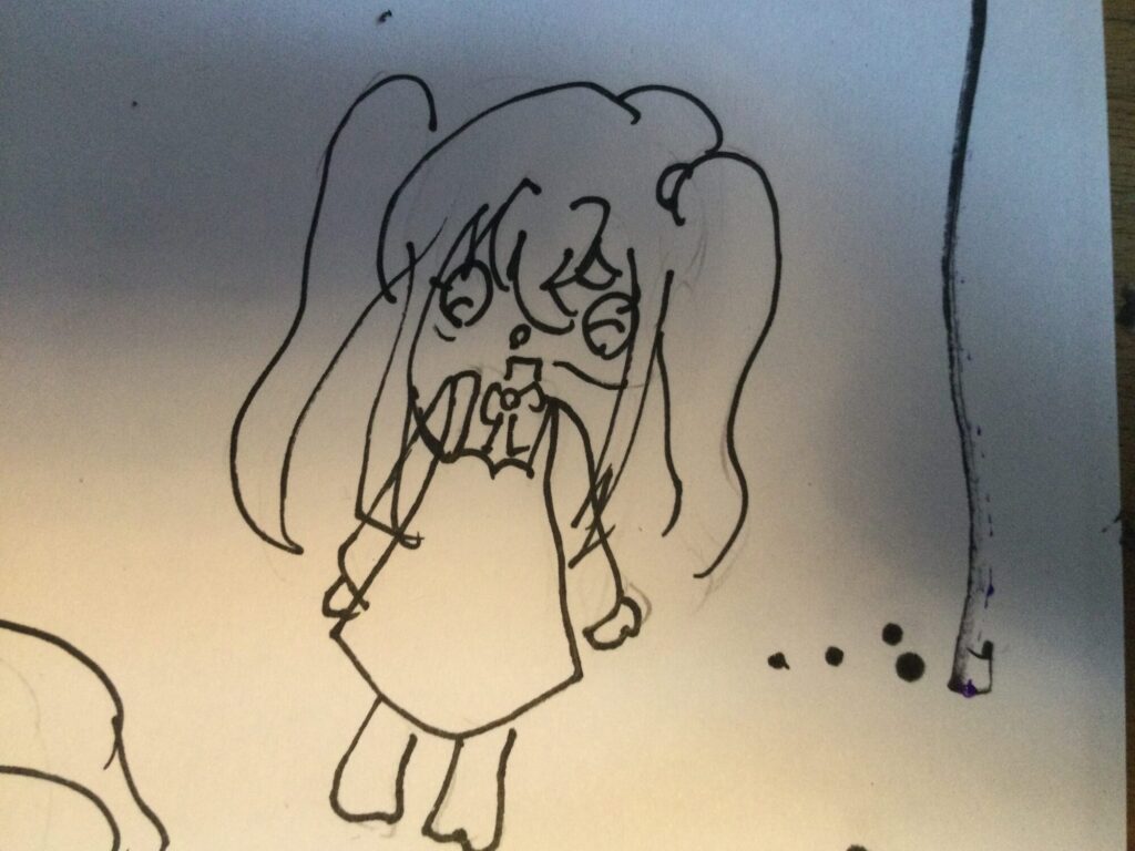 上の女の子と下の女の子はちょっと描き方を変えていますね?どちらも素適な絵だなと思いました